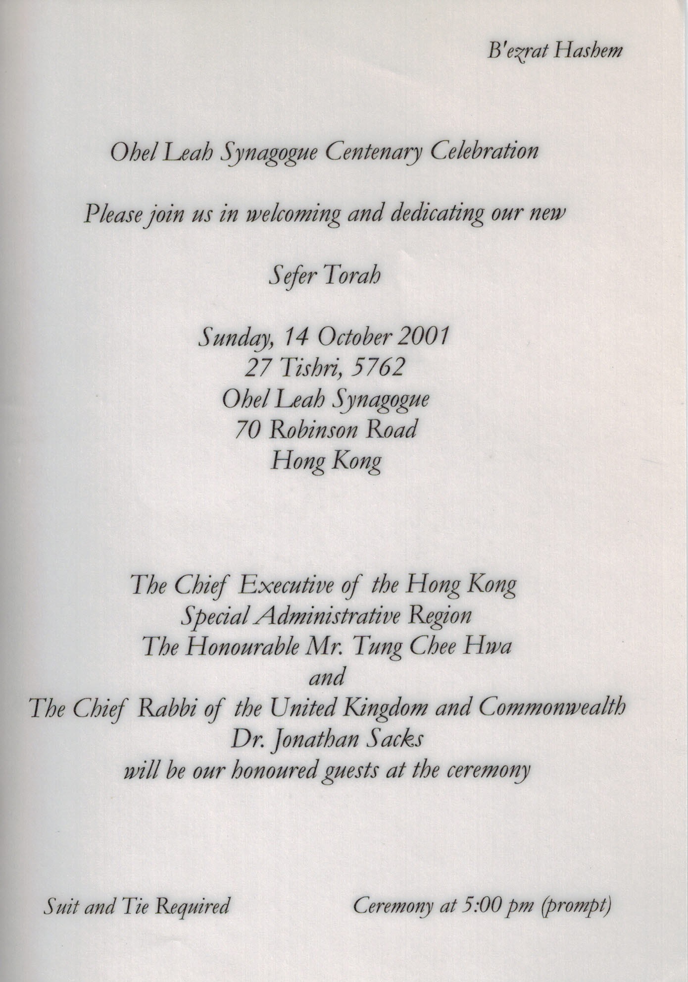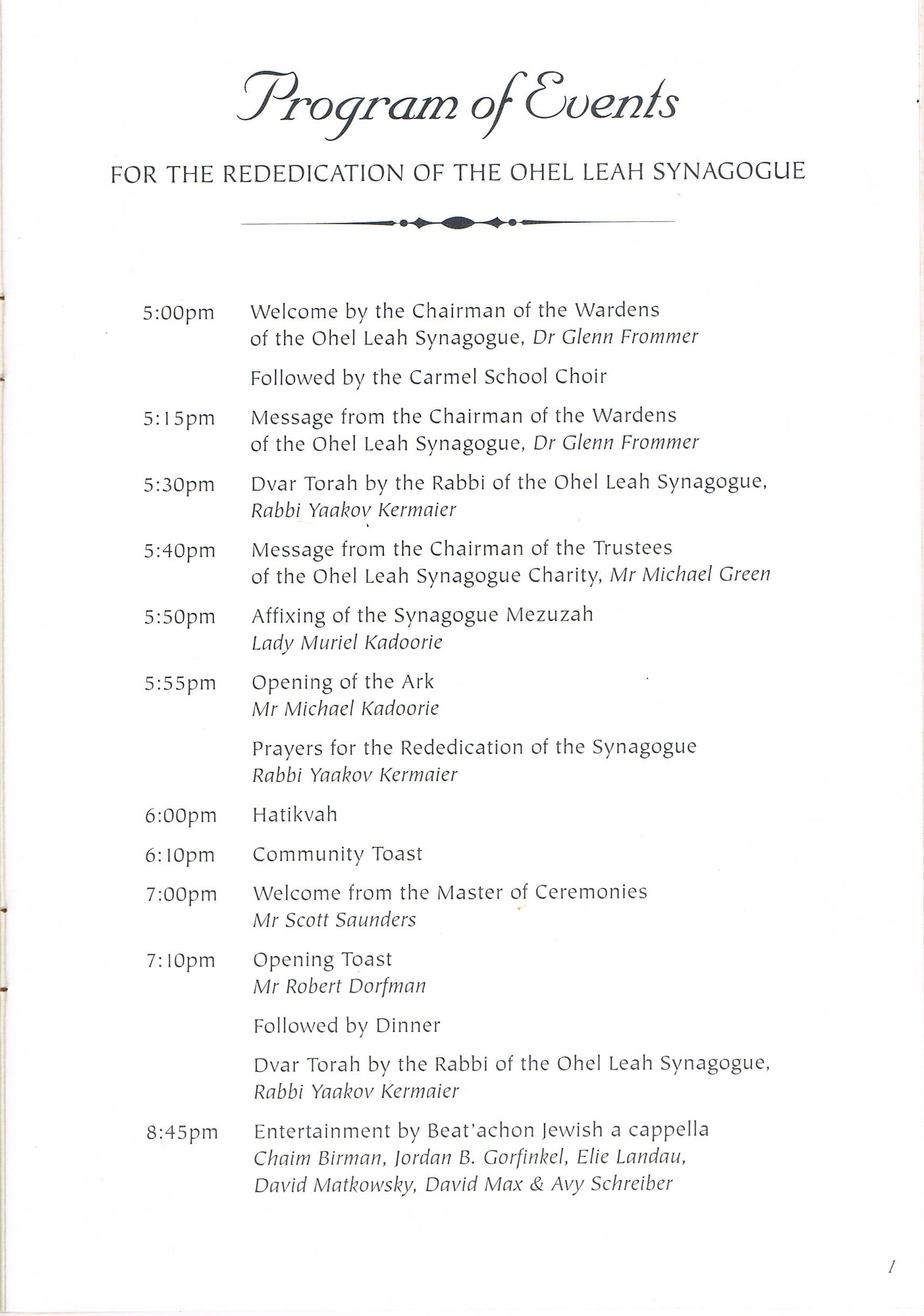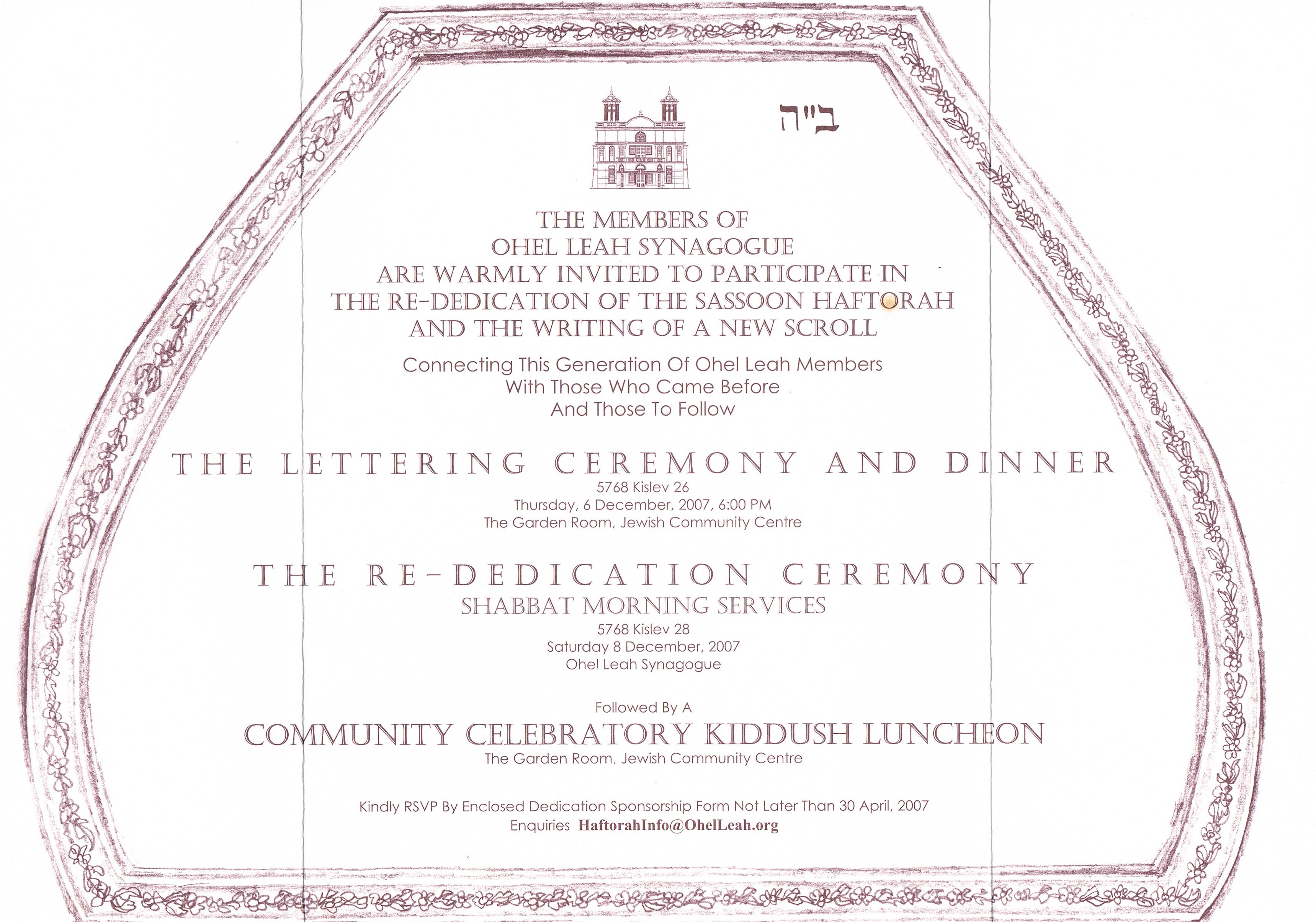 We are asking current and former Community members to donate both physical (“hard”) and/or digital (“soft”) copies of bar/bat mitzvah and wedding invitations, obituary and birth announcements, lecture flyers, newspaper articles, menus from Community dinners, etc. These items do not need to be of a specifically religious nature but they do need to be linked to the Community. For example, we would be interested to have a news article about a Community member’s business achievements, or a wedding invitation of a Community member, regardless of whether or not the event took place at a synagogue or the JCC.