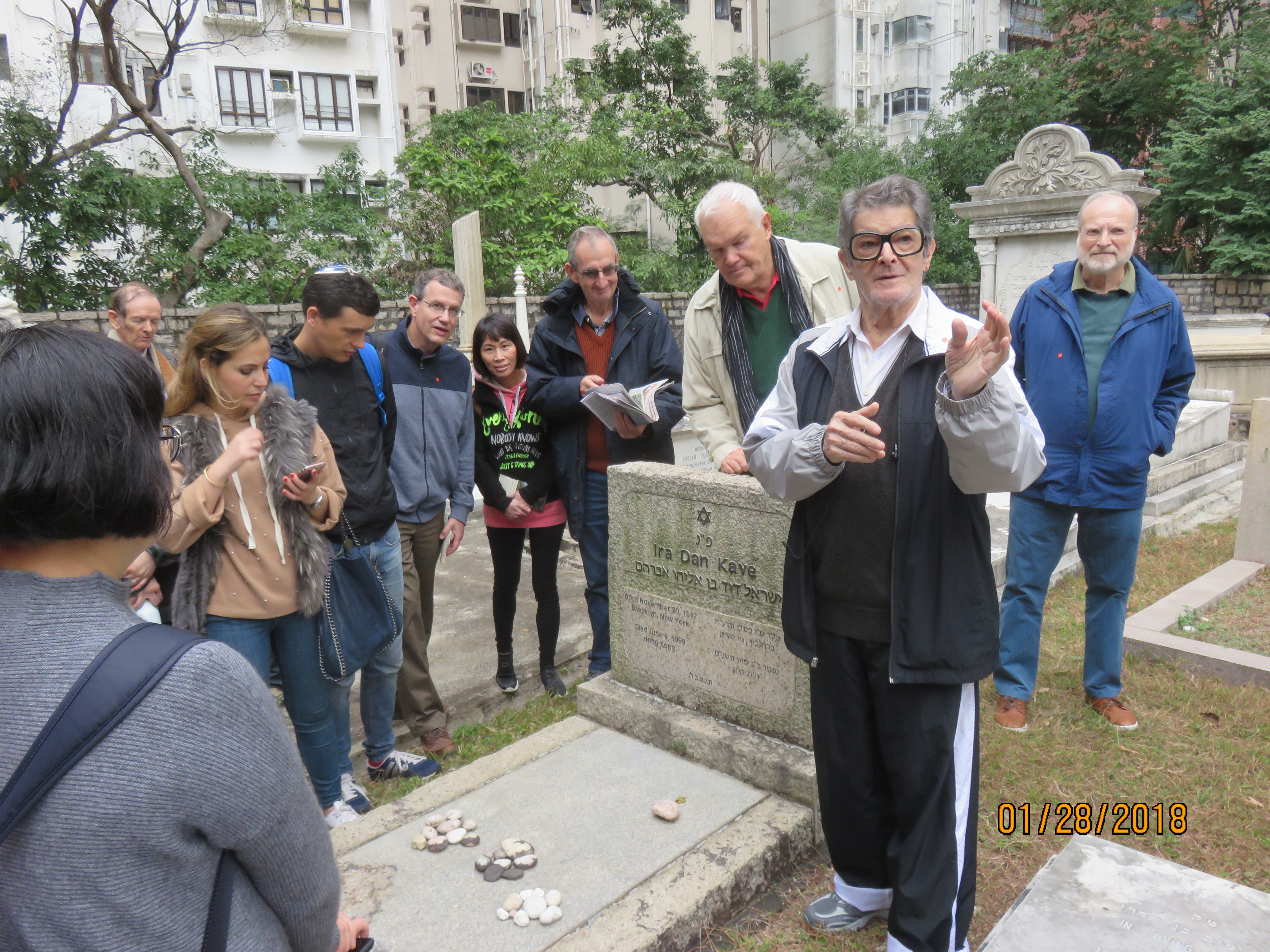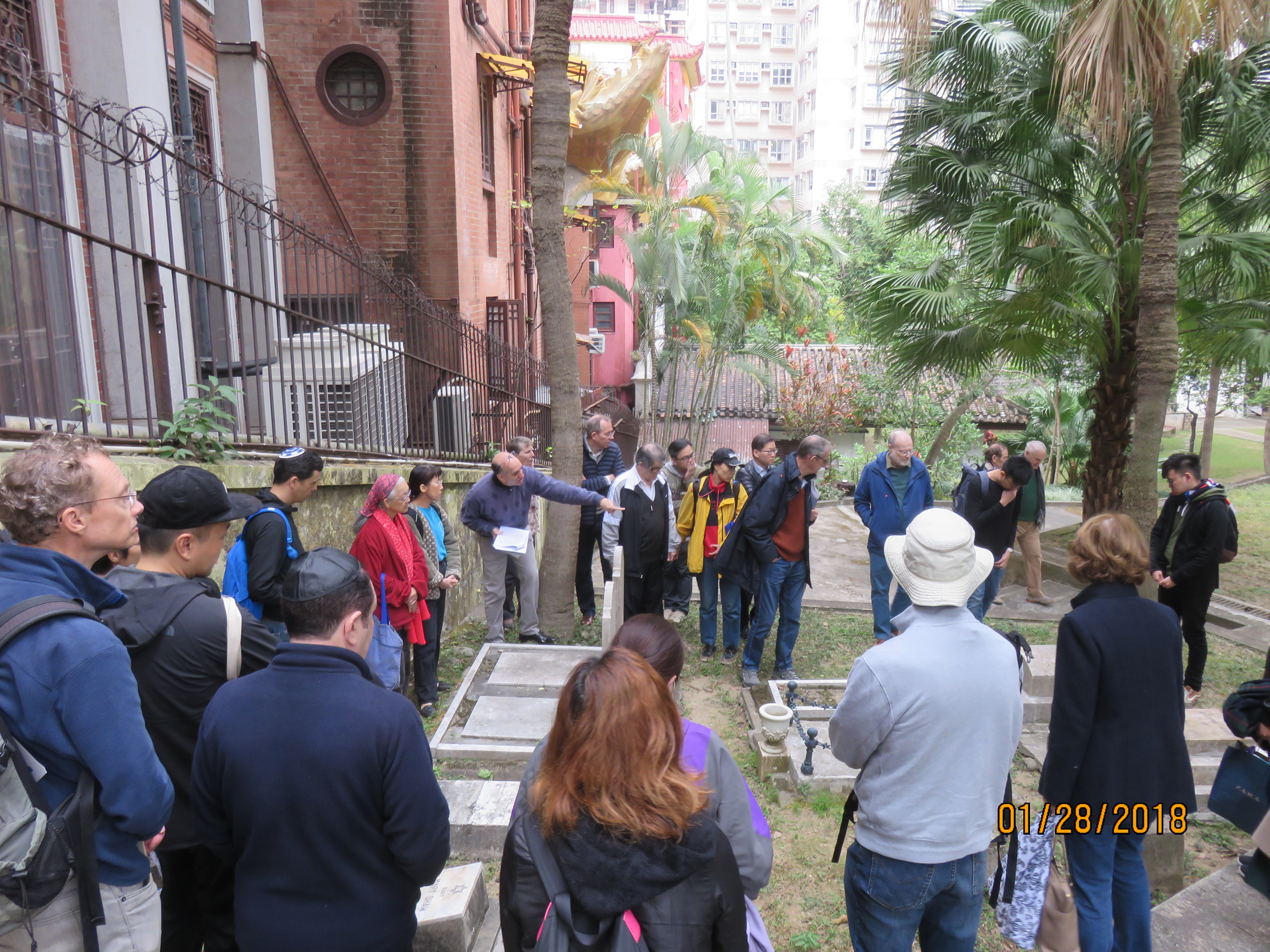 The Hong Kong Jewish Cemetery is now surrounded by high rise apartment blocks, with the entrance flanked on either side by a Buddhist temple and its school. It is one of the few Jewish cemeteries in the Far East that is still in use and in its original 19th century location. A worn Hebrew dedication plaque set into the back wall translates: