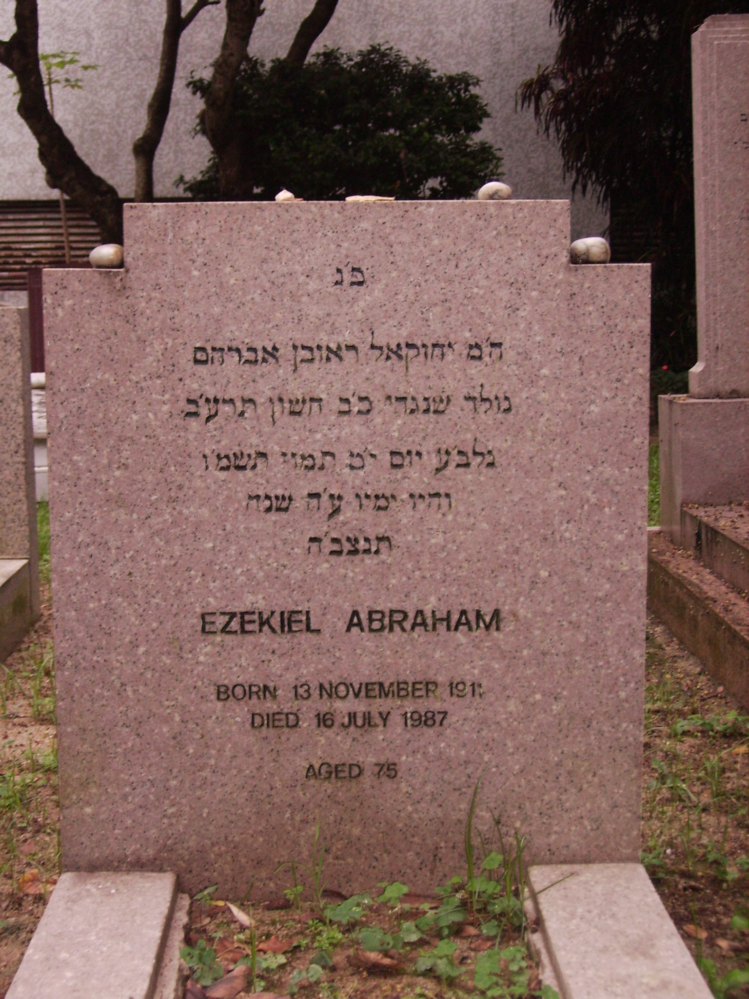 | Inscription (Eng) | EZEKIEL ABRAHAM BORN 13 NOVEMBER 1911 DIED 16 JULY 1987 AGED 75 |