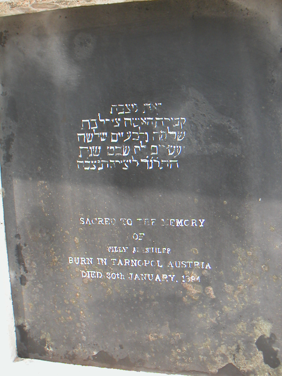 | Inscription (Eng) | SACRED TO THE MEMORY OF CILLY ALTSHILER BURN (sic) IN TARNOPOL AUSTRIA DIED 30TH JANUARY. 1894 |