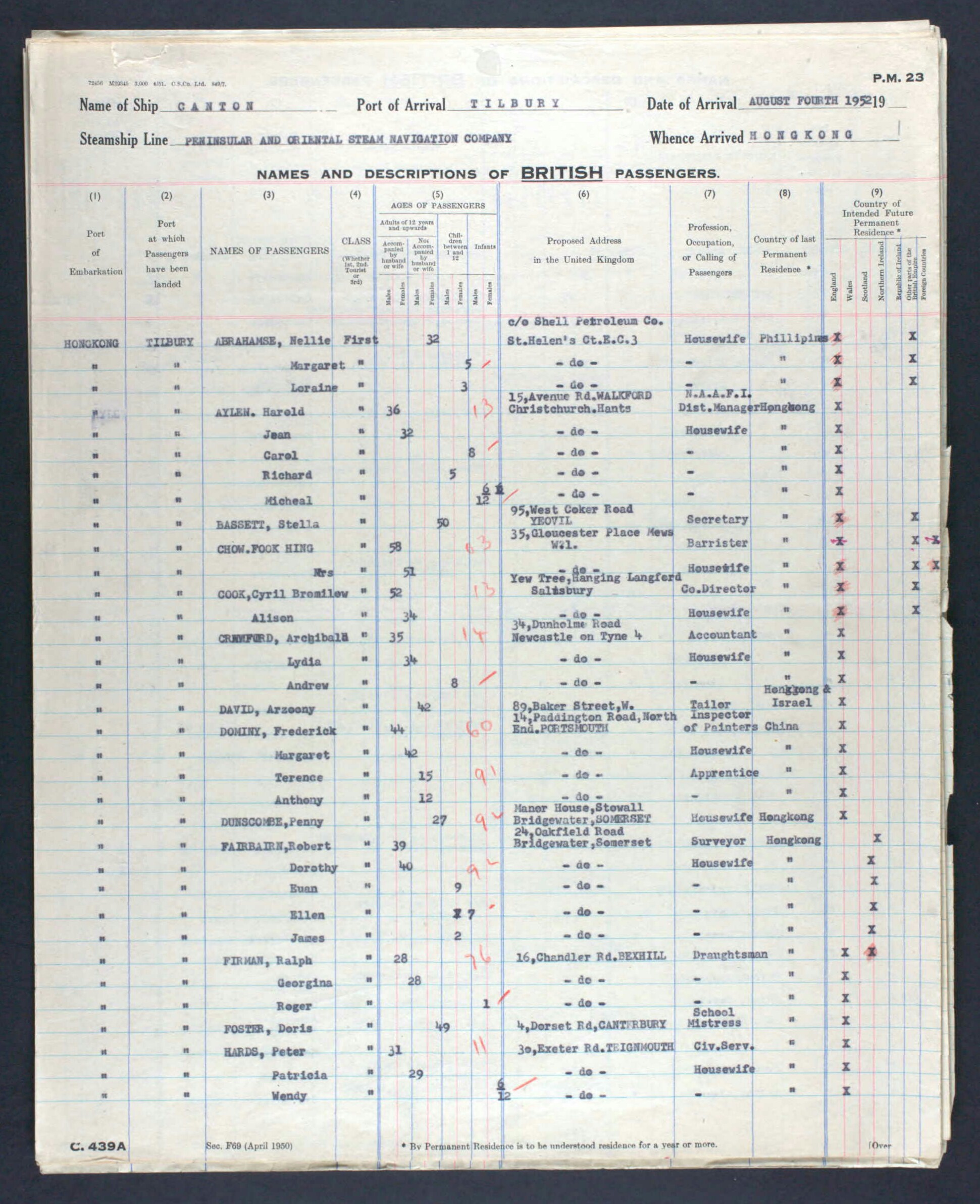 | Historical | He was a tailor. Granted UK naturalisation on July 9, 1948 (No. HO 334/257/4478). The certificate says he came from Iran, not Iraq. He was a private in the Jewish Company of the Shanghai Volunteer Corps. Miriam married Norman L. Abrahams of Liverpool in September 1959. Their children are Daniel J. Abrahams (b. October 1960) and Ruth S. Abrahams (b. June 1962). Doreen married Michael J Affleck of Hampstead (London) in July 1967. David and Doreen were living on Adamson Road in Hampstead in 1965. Perhaps he and Victoria had divorced. Victoria died on January 11, 1972. She is not buried in HK. She may have been living with Miriam in Hamilton, Ontario, at the time. |