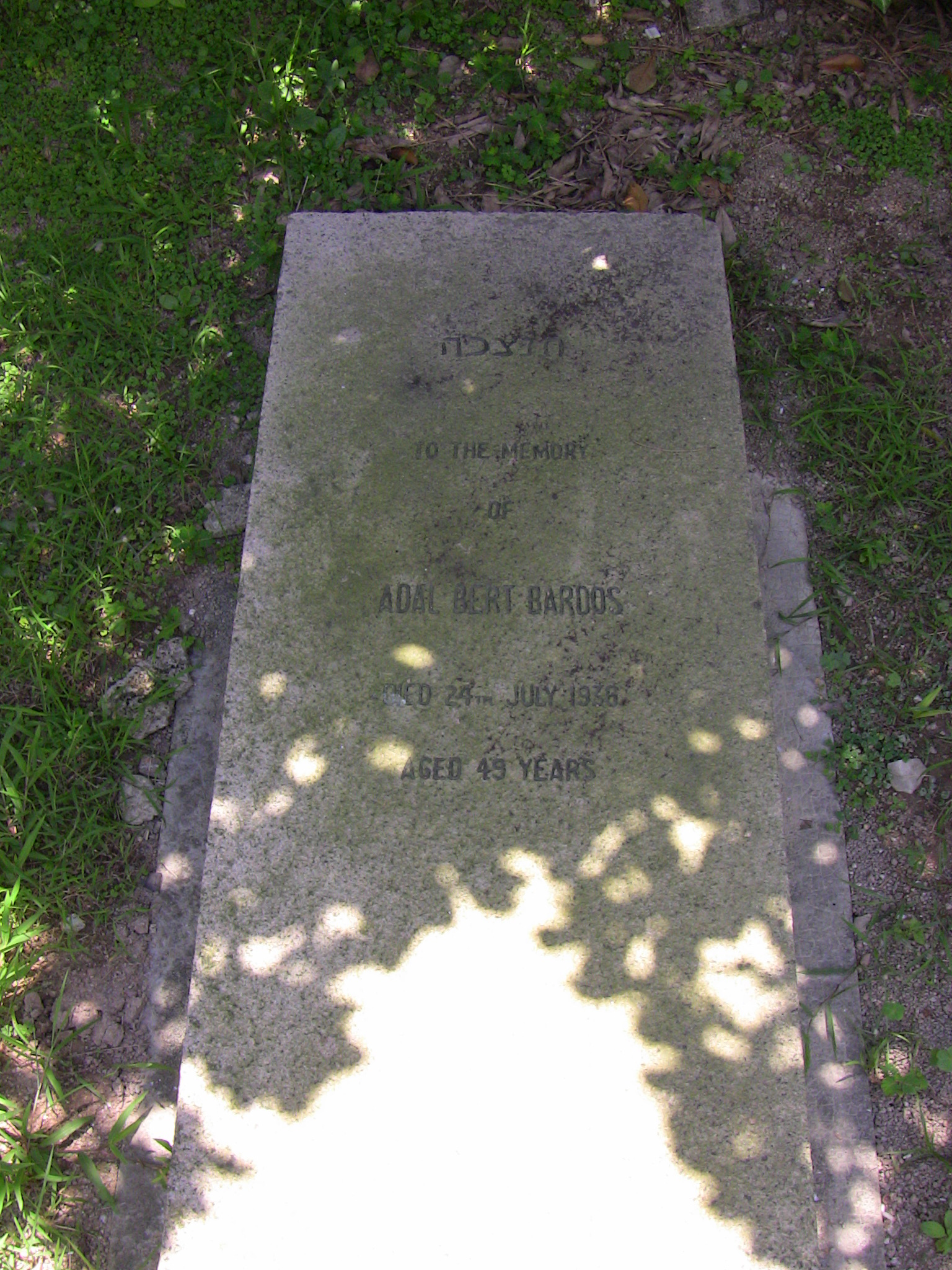 | Inscription (Eng) | TO THE MEMORY OF ADAL BERT BARDOS DIED 24TH JULY 1936 AGED 49 YEARS |