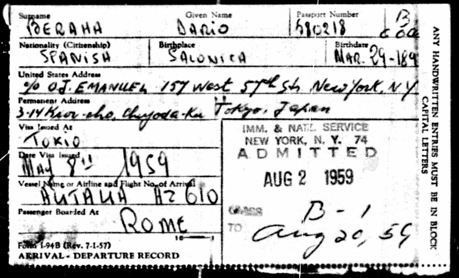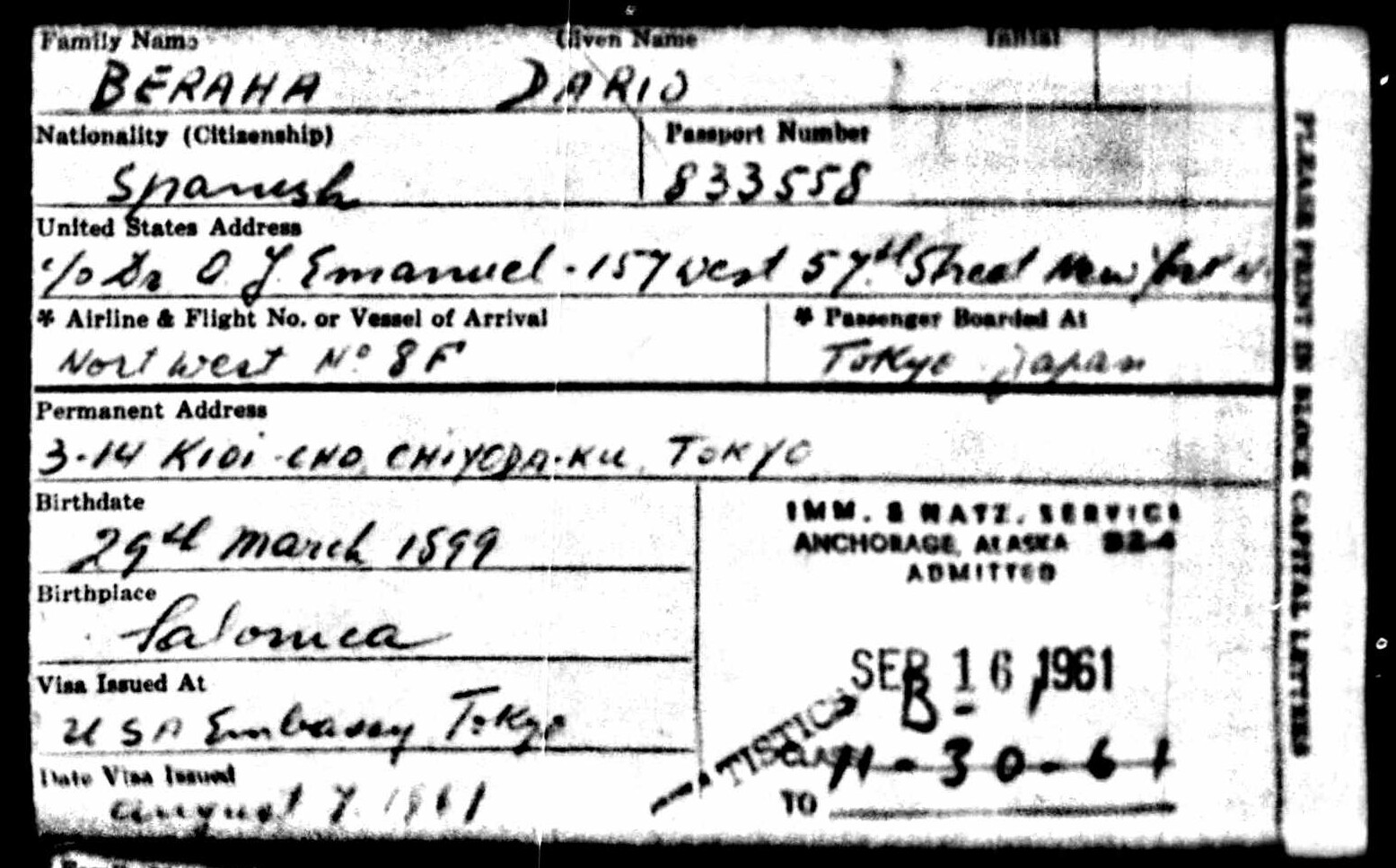 | Place of Birth | Salonika, Greece (today: Thessaloniki) |