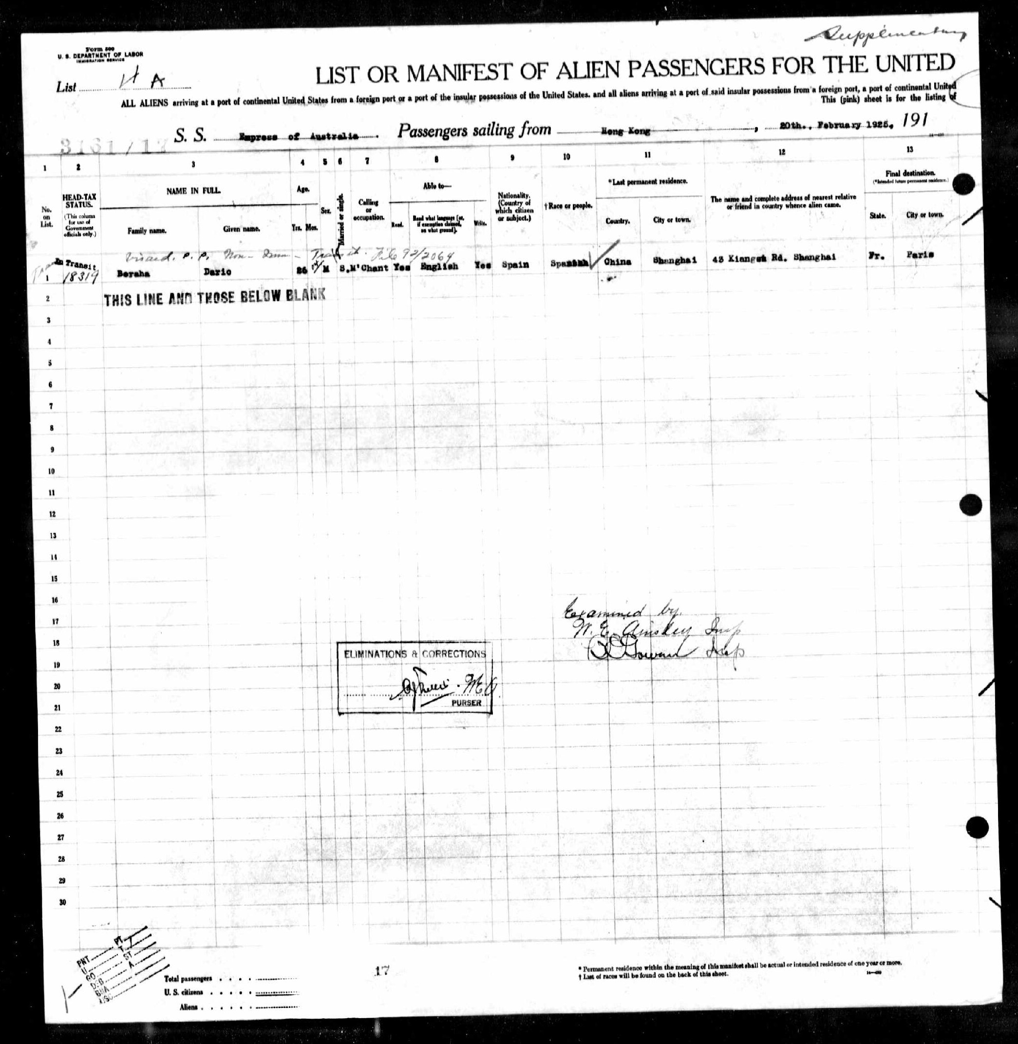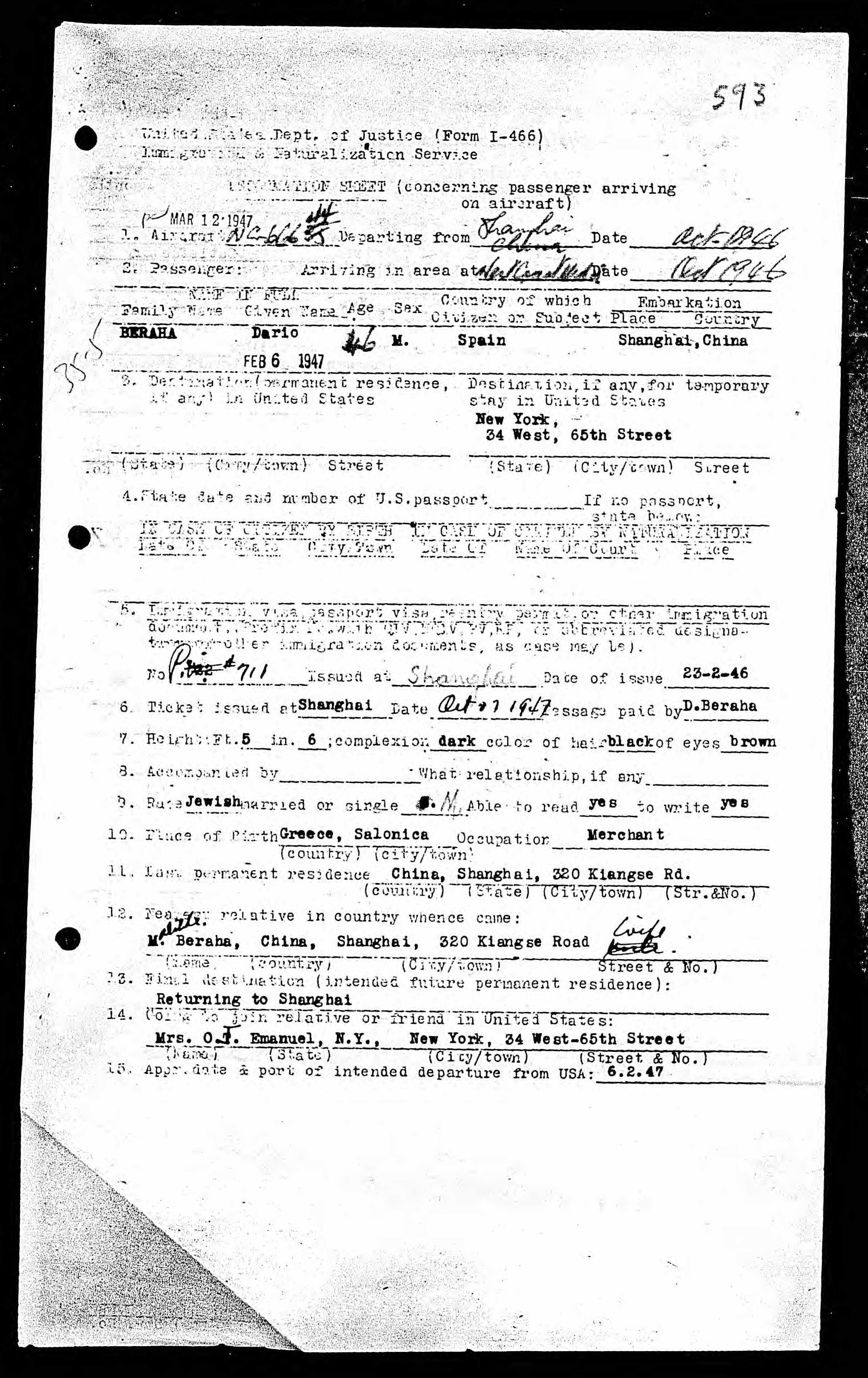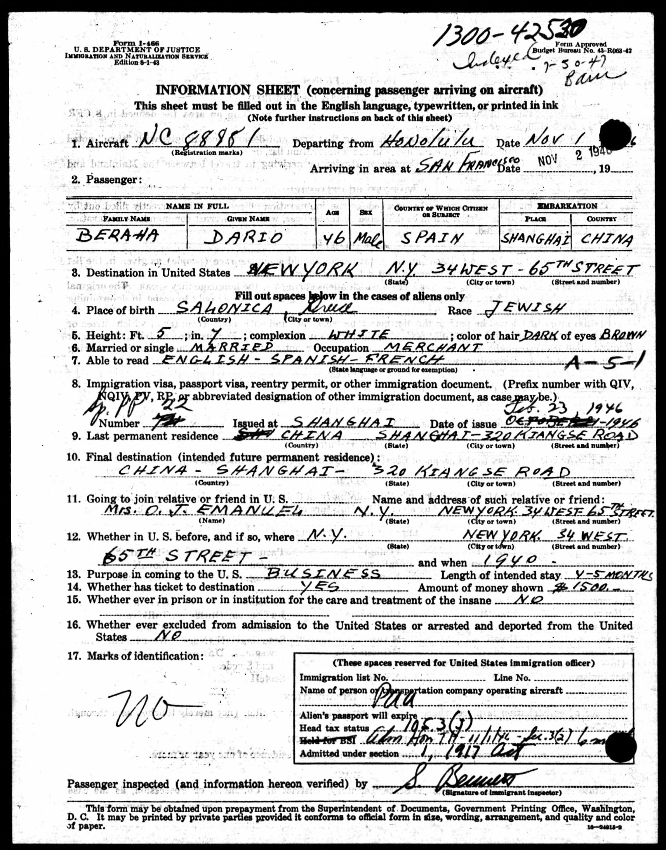 | Historical | In an article published in The Salt Lake Tribune on September 12, 1936, “Dario Beraha, son of a Shanghai exporter, was fined $500 by Federal Judge Michael J. Roche here Friday for attempting to smuggle jewels into the United States from the liner President Coolidge. Beraha was arrested last July when customs agents found jewels they said were valued at about $1250 in China, in a false compartment in a trunk.” In a related article published in the Oakland Tribune on September 11, 1936, “If Dario Beraha, 35, son of a wealthy Shanghai merchant, wants to give an engagement ring to his fiancee in Paris he’ll have to buy it back from the United States Customs Service. It was seized as part of $1250 worth of jewellery which agents found in a secret pocket in his trunk aboard the liner President Coolidge. He failed to declare it. In addition Federal Judge Michael Roche decreed, Beraha must pay a $500 fine or six months in jail for violation of the customs law.” In Shanghai, they lived at 320 Kiangse Road, which was next door to a primary school. Today, the street is known as Jiangxi Middle Road. |