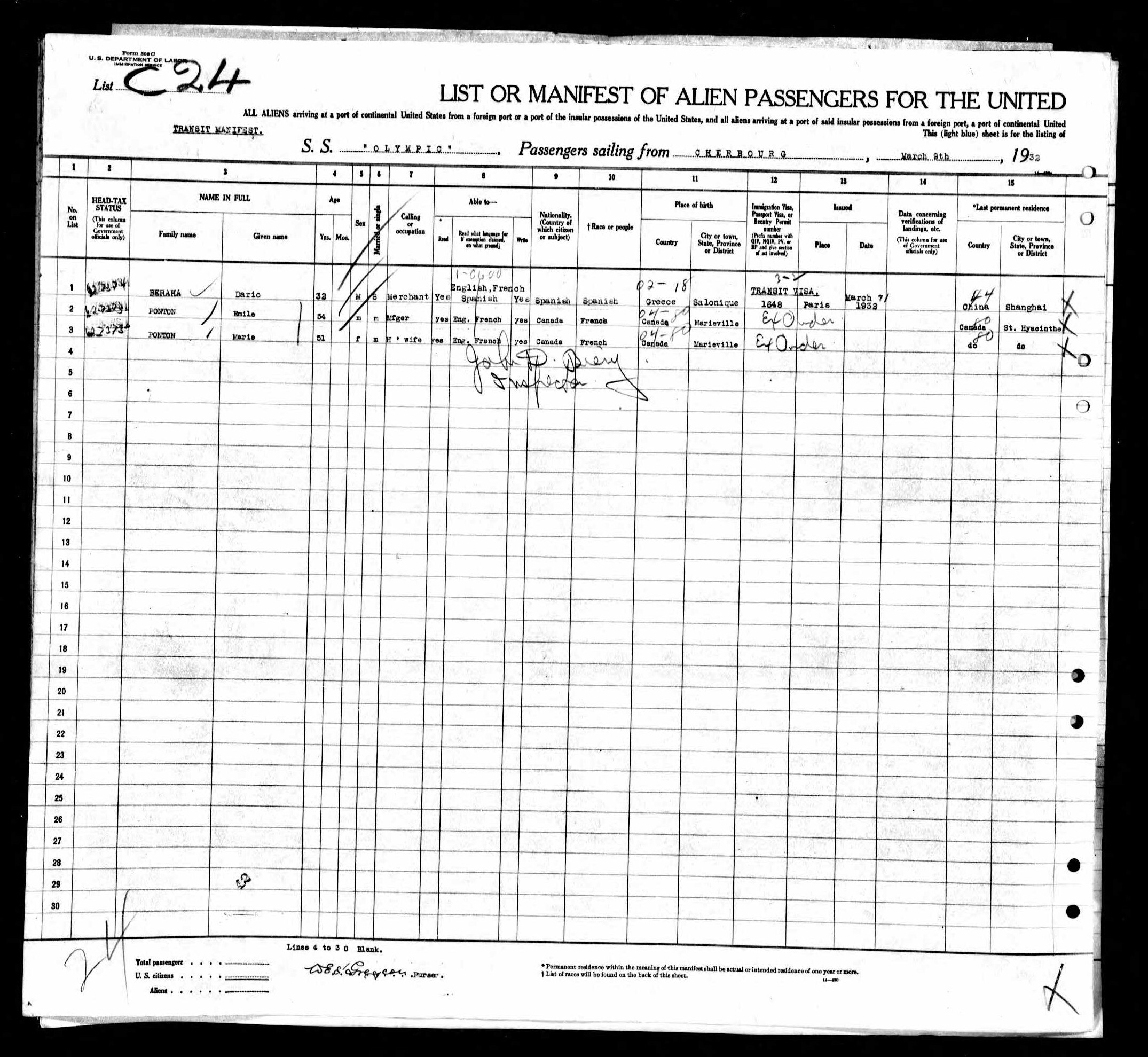 | Other Family Data | Siblings: Albert, Jacques, Lidia Emanuel (b. October 17, 1905) and Henri. Nephew (Albert’s son): Raymond Bera |