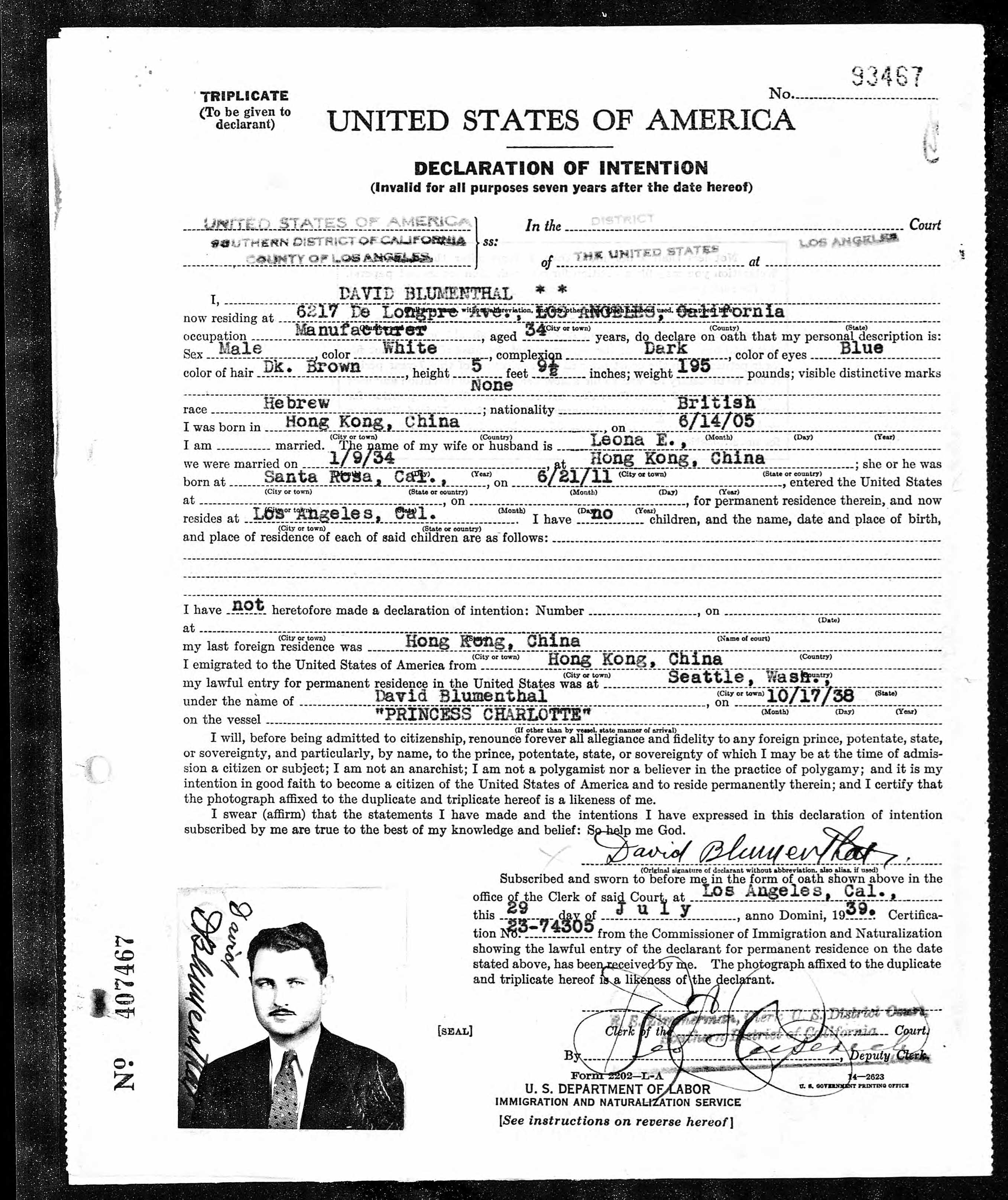 | Father’s Name | Nathan Blumenthal |
