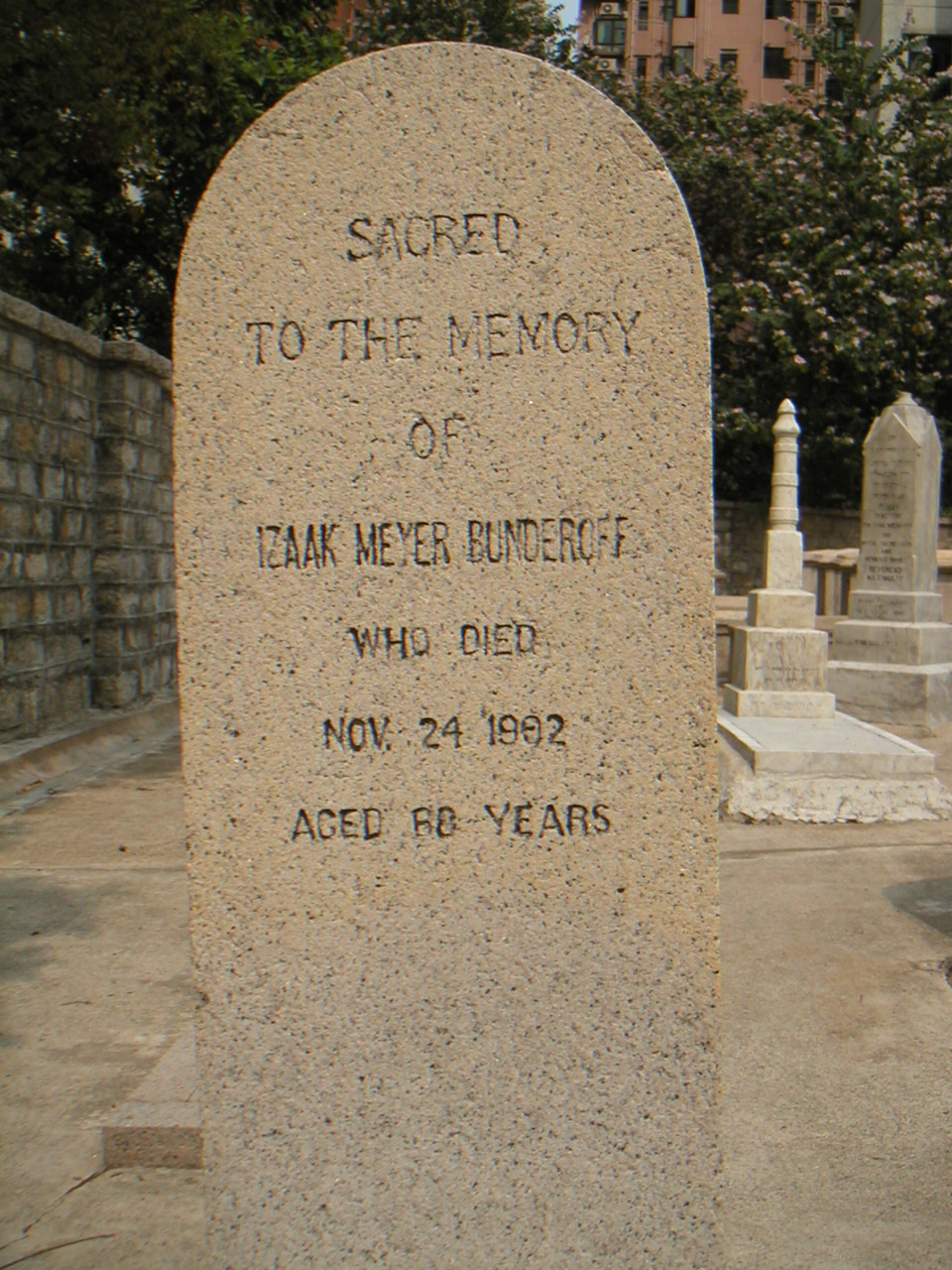 | Inscription (Eng) | SACRED TO THE MEMORY OF IZAAK MEYER BUNDEROFF WHO DIED NOV. 24 1902 AGED 60 YEARS. |