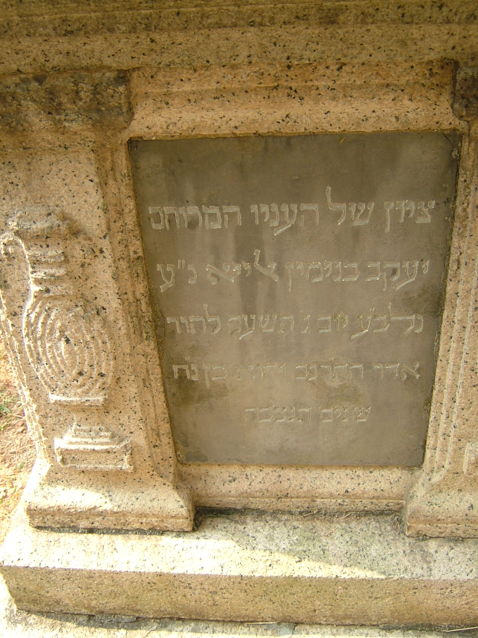 | Inscription (Heb) | ציון של העניו המרוחם יעקב בנימין אלייא נ״ע נלב״ע יום ג׳ תשעה לחודש אדר הת״רנב והוא בן נ״ח שנים תנצ״בה |