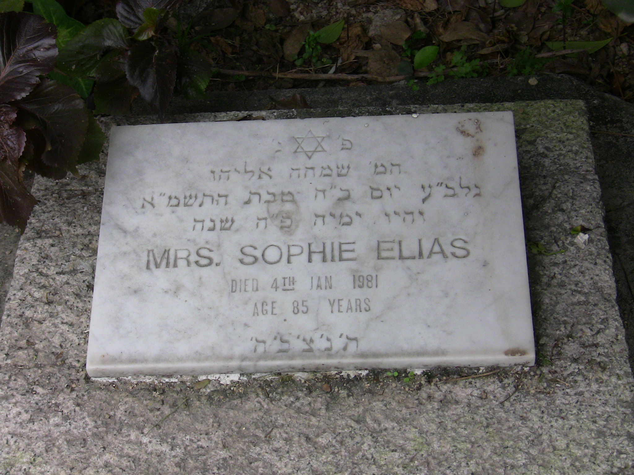 | Inscription (Eng) | MRS. SOPHIE ELIAS DIED 4TH JAN 1981 AGE 85 YEARS |