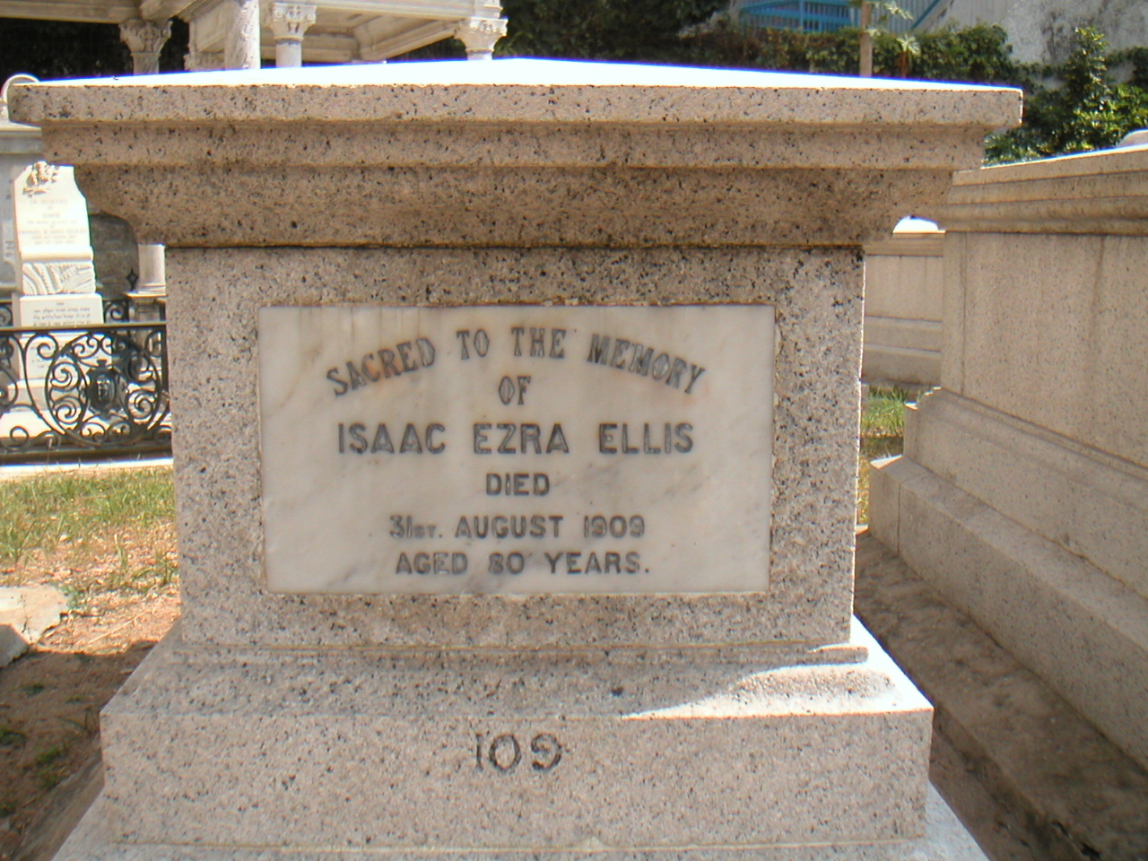| Inscription (Eng) | SACRED TO THE MEMORY OF ISAAC EZRA ELLIS DIED 31ST. AUGUST 1909 AGED 80 YEARS. |