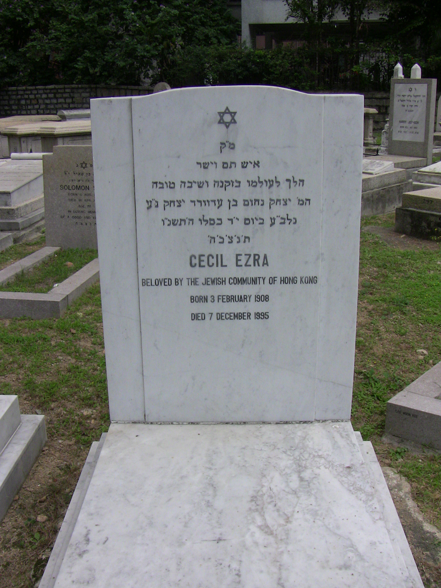 | Inscription (Eng) | CECIL EZRA BELOVED BY THE JEWISH COMMUNITY OF HONG KONG BORN 3 FEBRUARY 1908 DIED 7 DECEMBER 1995 |
