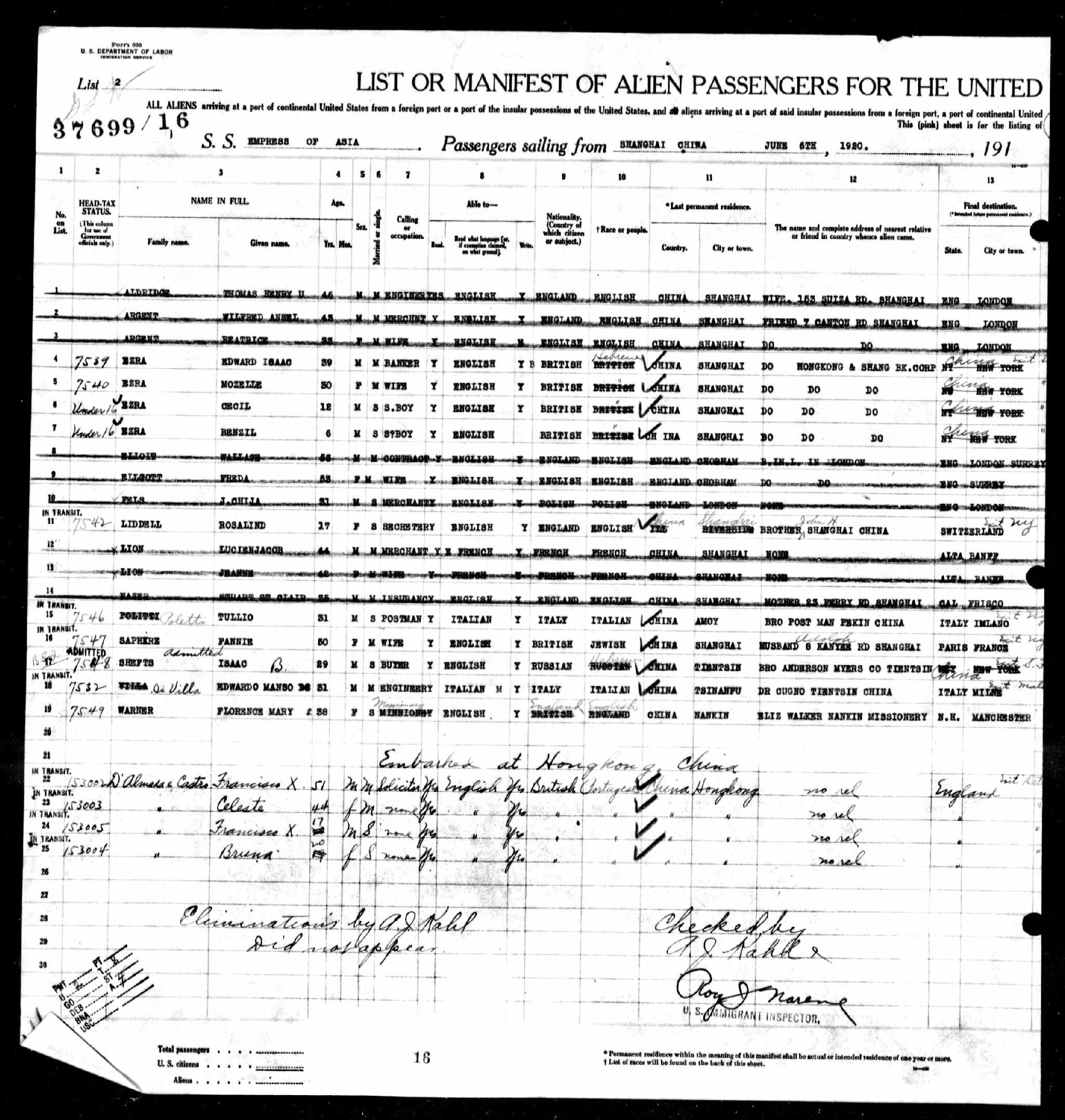 | Historical | Cecil’s stepfather, Elias Isaac Ezra, was also his uncle. Jacob Saul wrote on November 24, 2021: “Cecil had a lot of energy, was well spoken and thoughtful. His family was fabulously wealthy in Shanghai but they lost it all in 1949. He remained in Shanghai until the 1960s trying to claim his properties from the Chinese government but to no avail. He could discuss at length all the hurdles he had to go through but all he ended up with were worthless deeds. How he survived from 1949 to the ’60s as a foreigner in China is beyond me since all the foreigners had left to HK, the US, etc. He always had a good countenance. We met him hundreds of times and we never once heard a complaint or resentment of his life. He would speak to us children as young adults — a novelty even today. “My father would have him come to his office for lunch and make him part of the group, entertaining his opinions and restoring his self-worth. My father must have known them well from Shanghai since we visited Cecil’s mother (Mrs. Robinson) in Kowloon not infrequently. “In HK, Cecil would travel by bus among the simple folk; he never lost self-dignity. I believe the Kadoories may have given him an apartment in Peninsula Hotel. “His brother was Denzil and you could tell in their speech and in their taste in clothes that they had been brought up as princes in Shanghai. I believe Denzil had a fancy clothing store. He was not in good health. “Unfortunately, many of the Iraqi Jews remained as bachelors for lack of suitable Jewish women. My father was lucky. He was offered a job in an Iraqi Jewish bank in NYC. It turned out to be a ruse for a shidduch (marriage match) he rejected, but eventually met he his wife, our mother.” |