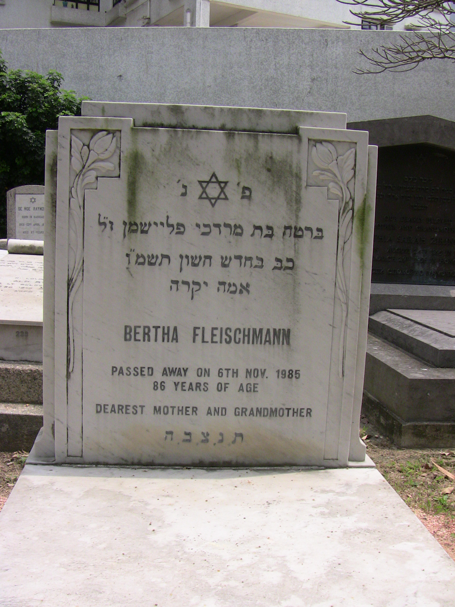 | Inscription (Eng) | BERTHA FLEISCHMANN PASSED AWAY ON 6TH NOV. 1985 86 YEARS OF AGE DEAREST MOTHER AND GRANDMOTHER |