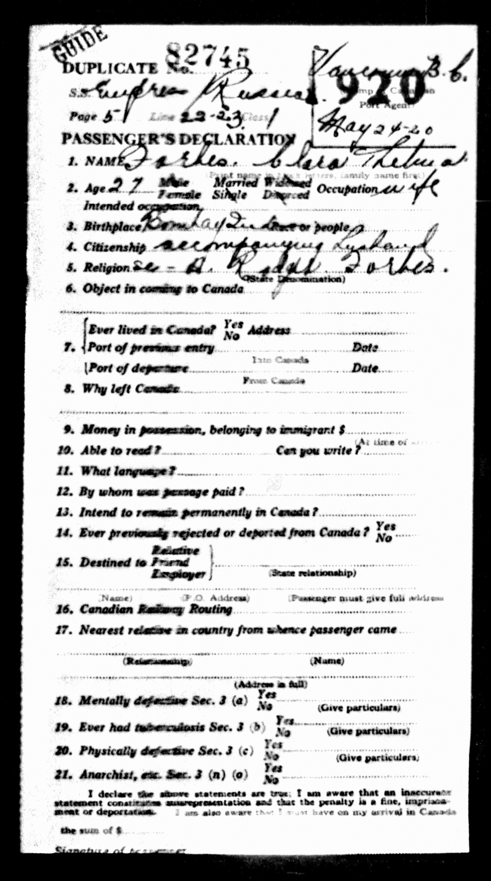 | Given Name(s) | Clara Thelma |