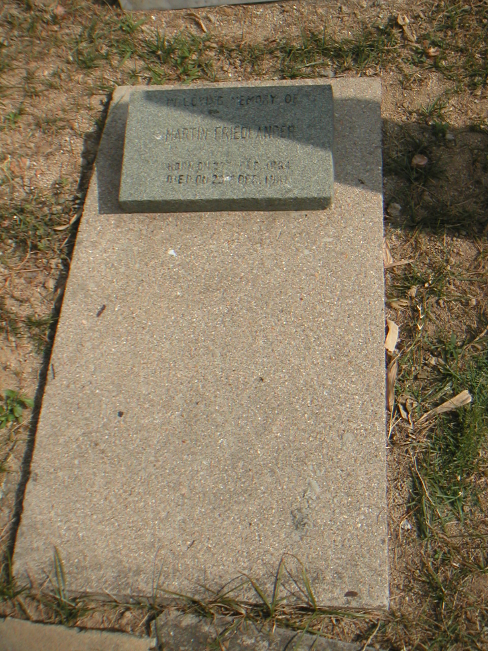 | Inscription (Eng) | IN LOVING MEMORY OF MARTIN FRIEDLANDER BORN ON 27TH FEB. 1884 DIED ON 23RD DEC 1941 |