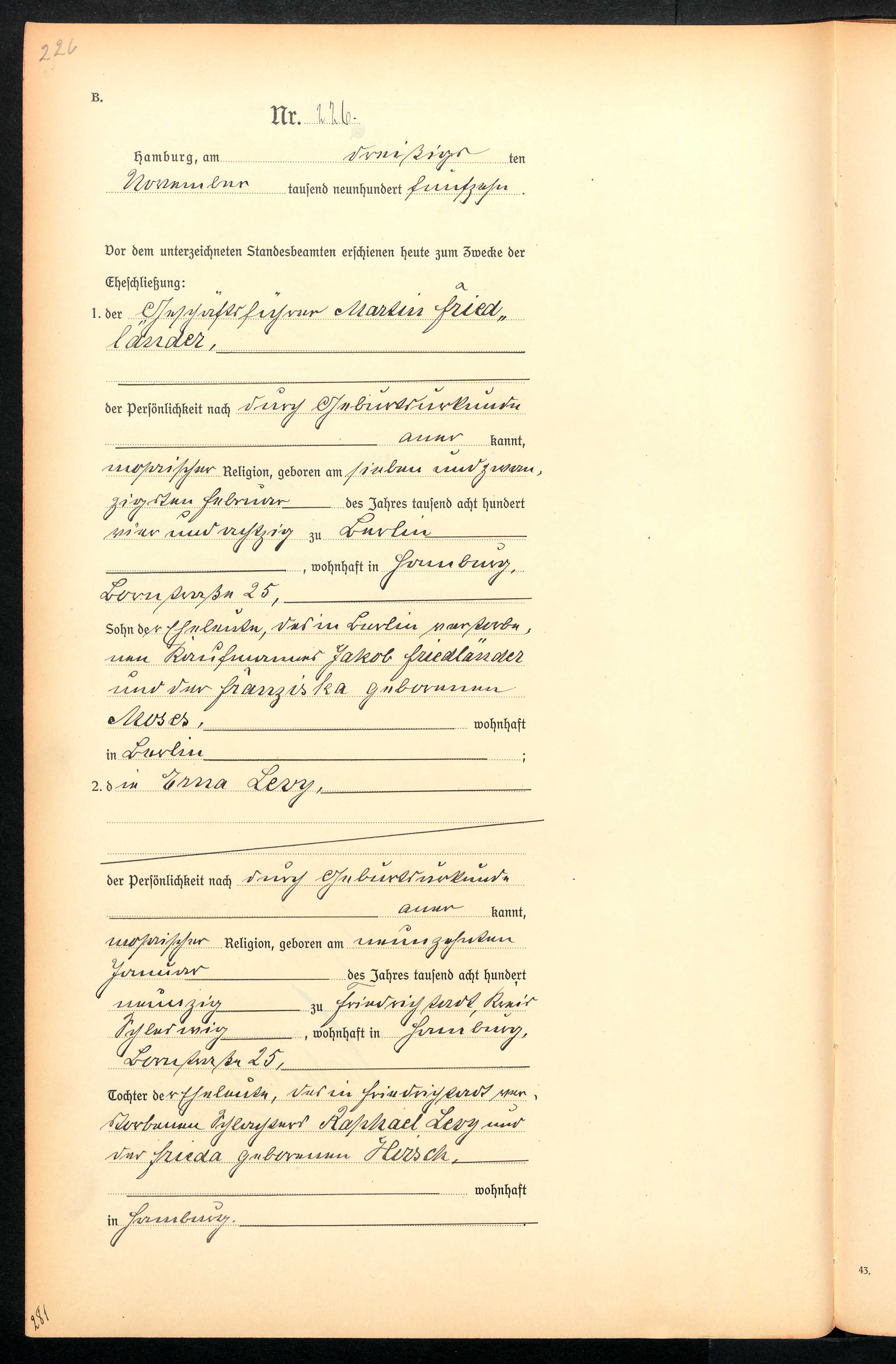 | Other Family Data | Siblings: Fanni Friedländer Presch (b. December 06, 1882, Berlin; d. 1942, Holocaust) and Albert Friedländer (b. June 19, 1888, Berlin) |