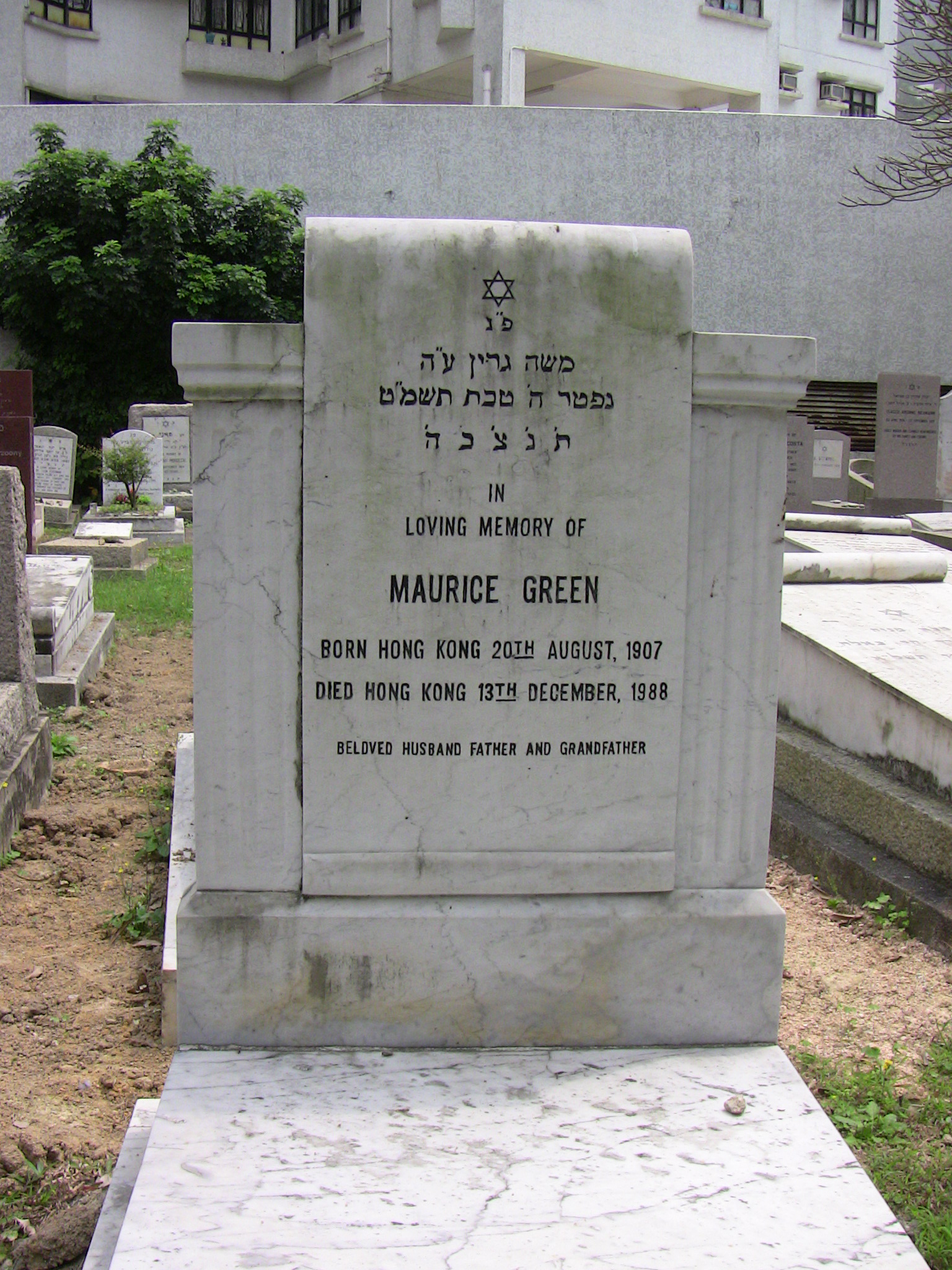 | Inscription (Eng) | IN LOVING MEMORY OF MAURICE GREEN BORN HONGKONG 20TH AUGUST 1907 DIED HONGKONG 13TH DECEMBER 1988 BELOVED HUSBAND FATHER AND GRANDFATHER |
