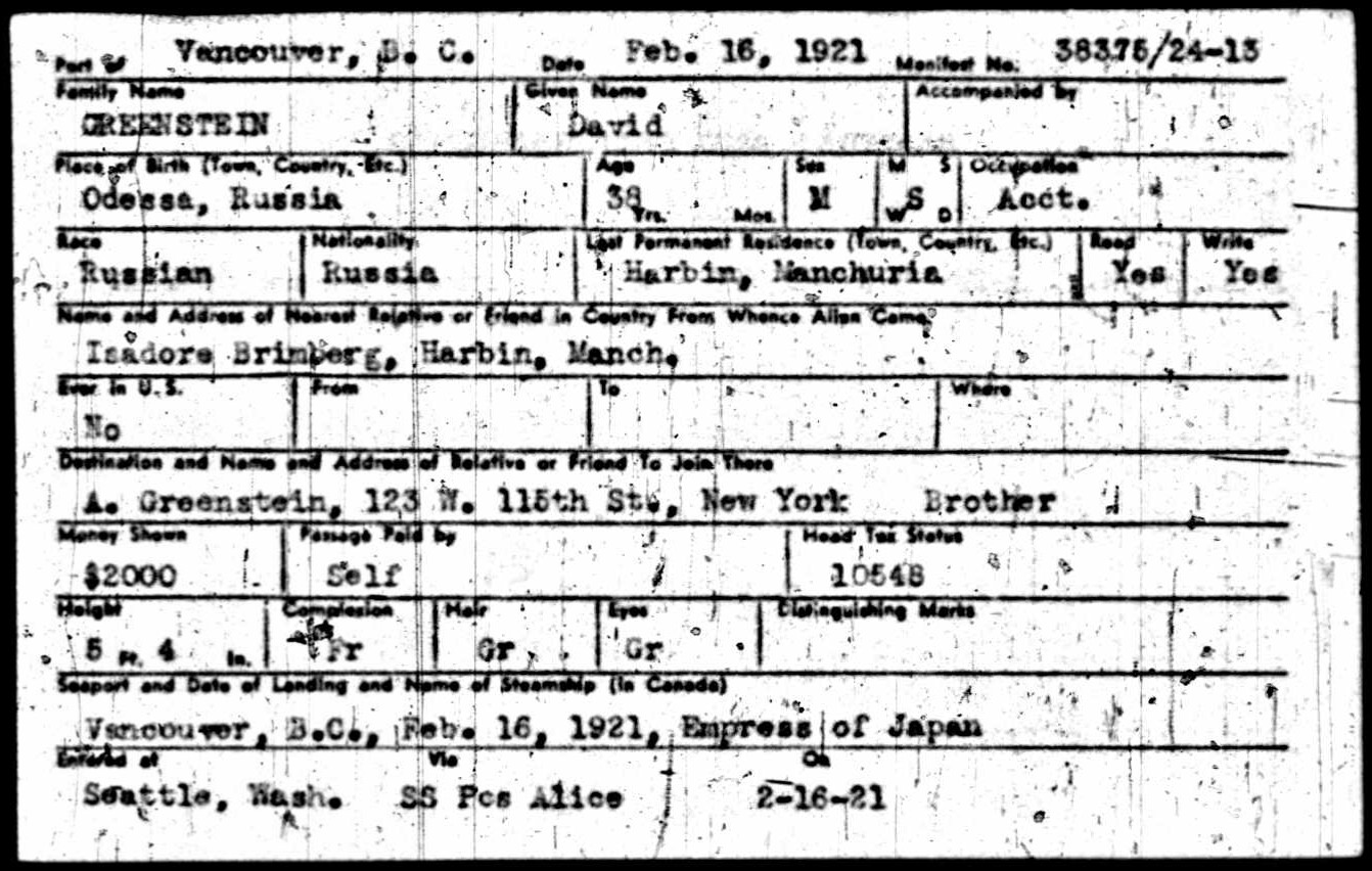 | Surname | Greenstein |