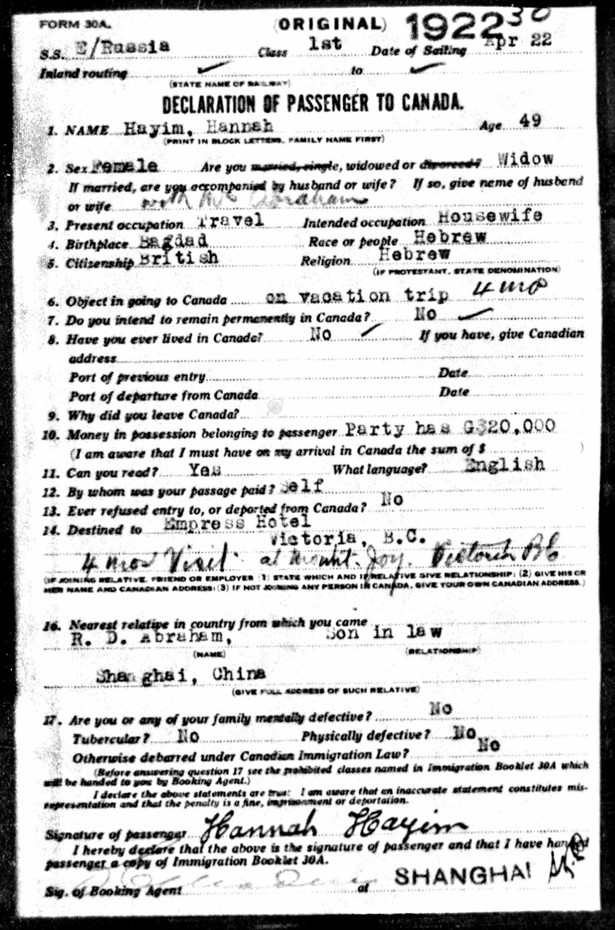 | Spouse’s Name | Joseph Hayim Shashoua |