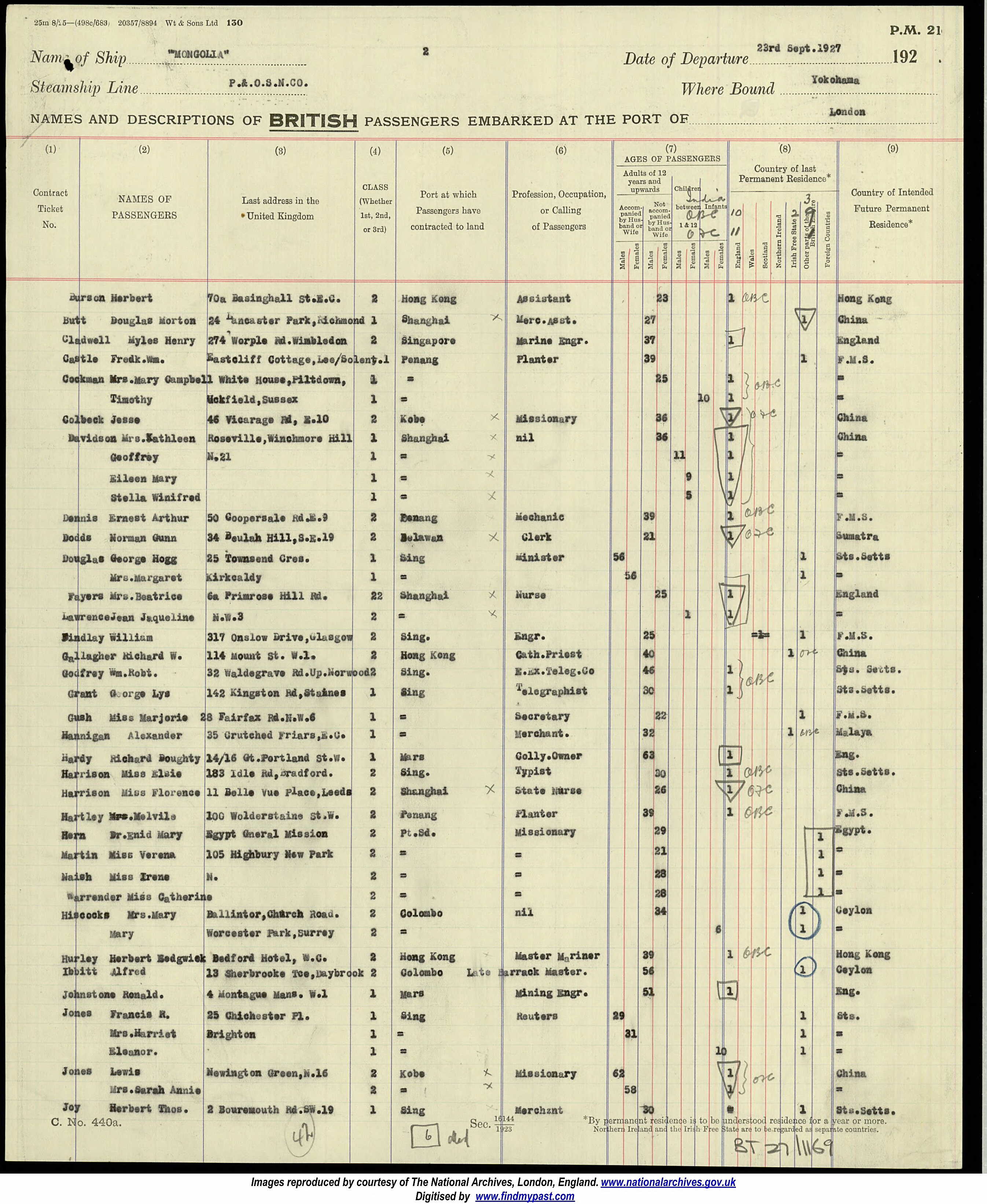 | Historical | Use of Arabic numbers on a stone for someone who was probably a convert. According to his birth records, his middle name is spelled “Sedgwick”. He is listed in 1891 England & Wales Census. He was 3 years old and was living as a border with his older sister (Marian, 6) and brother (Edward L. (Ladbrook), 5) at 113 Ladbroke Grove, Kensington, London, England. His siblings were born in Ceylon. His parents were not mentioned. They may have been living in Ceylon at the time as his father was the chief superintendent of the post office telegraphs in Colombo. His brother, Edward Ladbrook Hurley, is buried in the Hong Kong Cemetery. He died on April 18, 1937, at age 51. He was a master mariner. On June 22, 1920, the SCMP reported that he and Miss M.P. Goldenberg were to be married. He was the chief officer of the “Yatshing” at the time. The SS Yatshing cargo ship was scuttled in Hong Kong sometime in 1942. It was raised, repaired and put into Japanese service as Nissho Maru until 1945. |