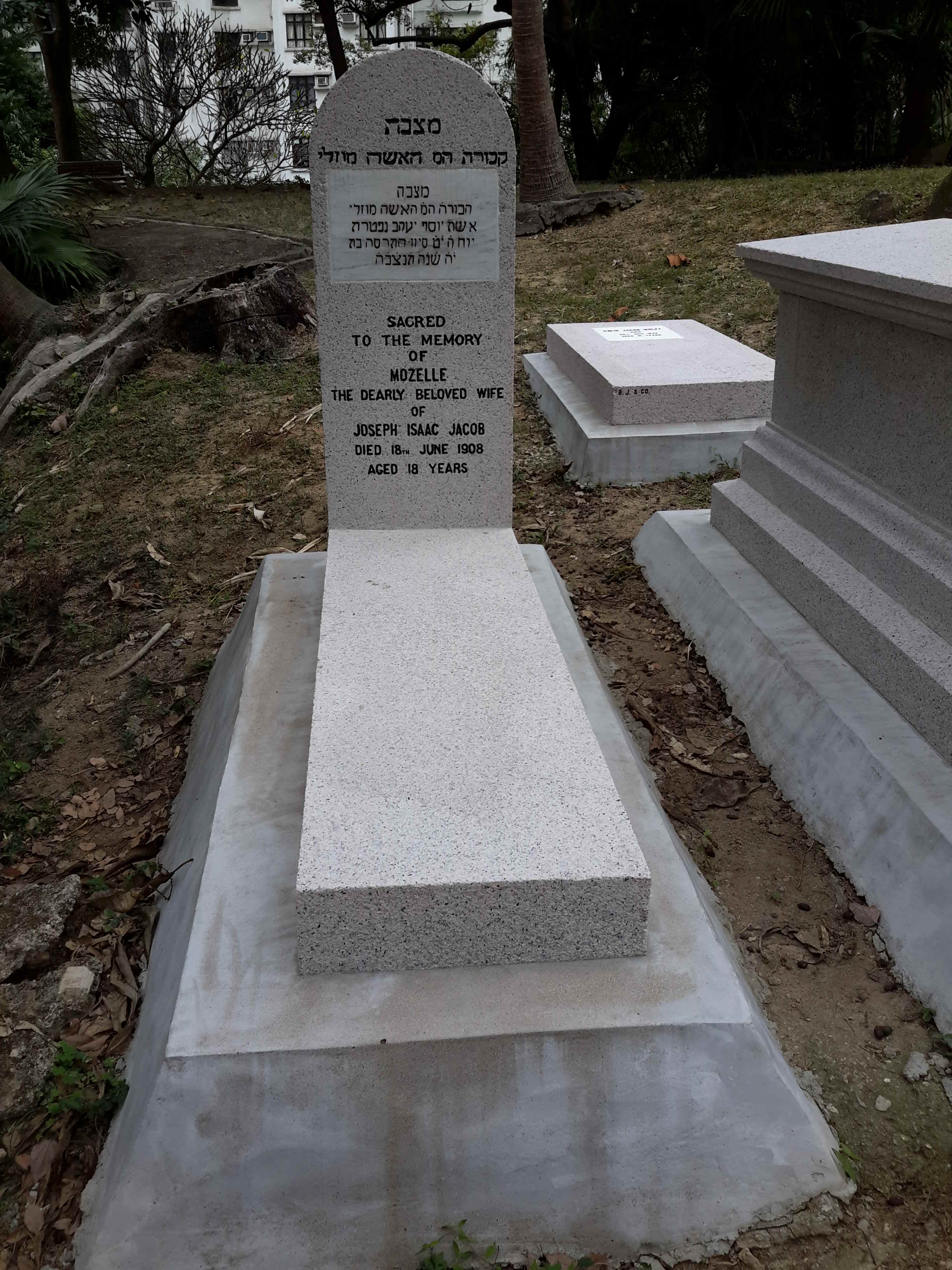 | Inscription (Eng) | SACRED TO THE MEMORY OF MOZELLE THE DEARLY BELOVED WIFE OF JOSEPH ISAAC JACOB DIED 18TH JUNE 1908 AGED 18 YEARS |
