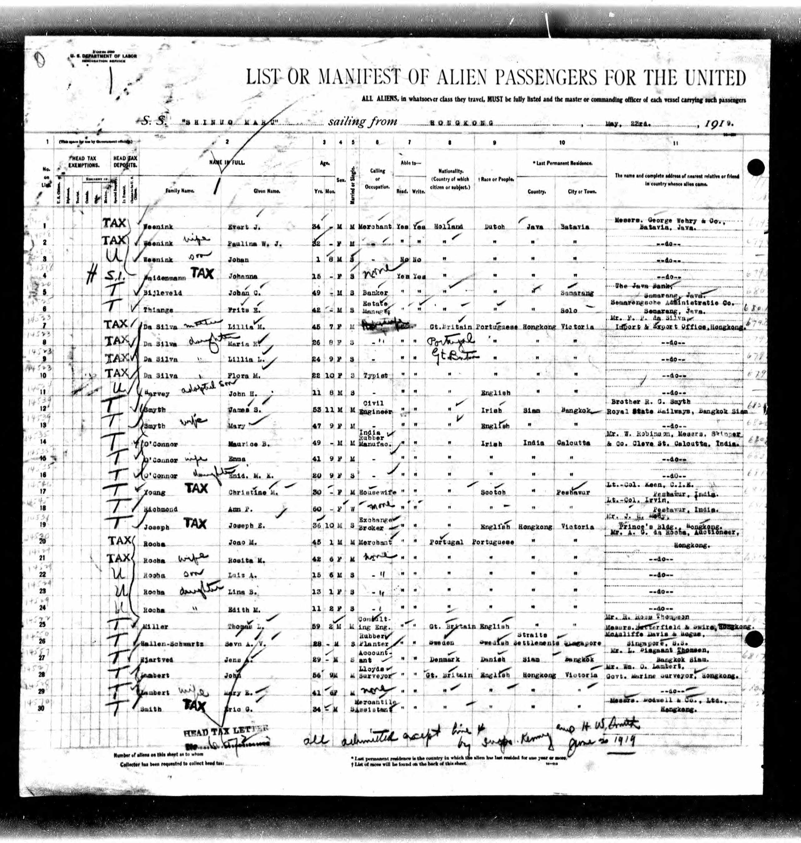| Historical | He arrived in HK in 1884 but lived much of his life in Shanghai. In a 1917 jurors’ list, he is listed as a broker in Prince’s Building. He lived at 39 Conduit Road. Hebrew date should be “ט״ו” and his age should be ס״ד. Died at the French Hospital, which was another name for St Paul’s Hospital, in Causeway Bay. Felix Villas in Pokfulam is named after his brother, Felix. Felix married Gladys Enid Abelson (b. 1904, London; d. November 4, 1976, Harringay, London) in March 1923 in Marylebone and they had three children, Anthony, Geoffrey and Wendy. |