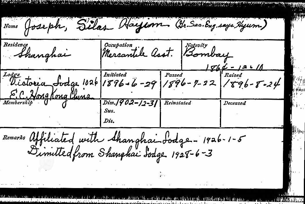 | Historical | In an 1898 jurors’ list, he is listed as an assistant at David Sassoon Sons & Co. Age is slightly off. |