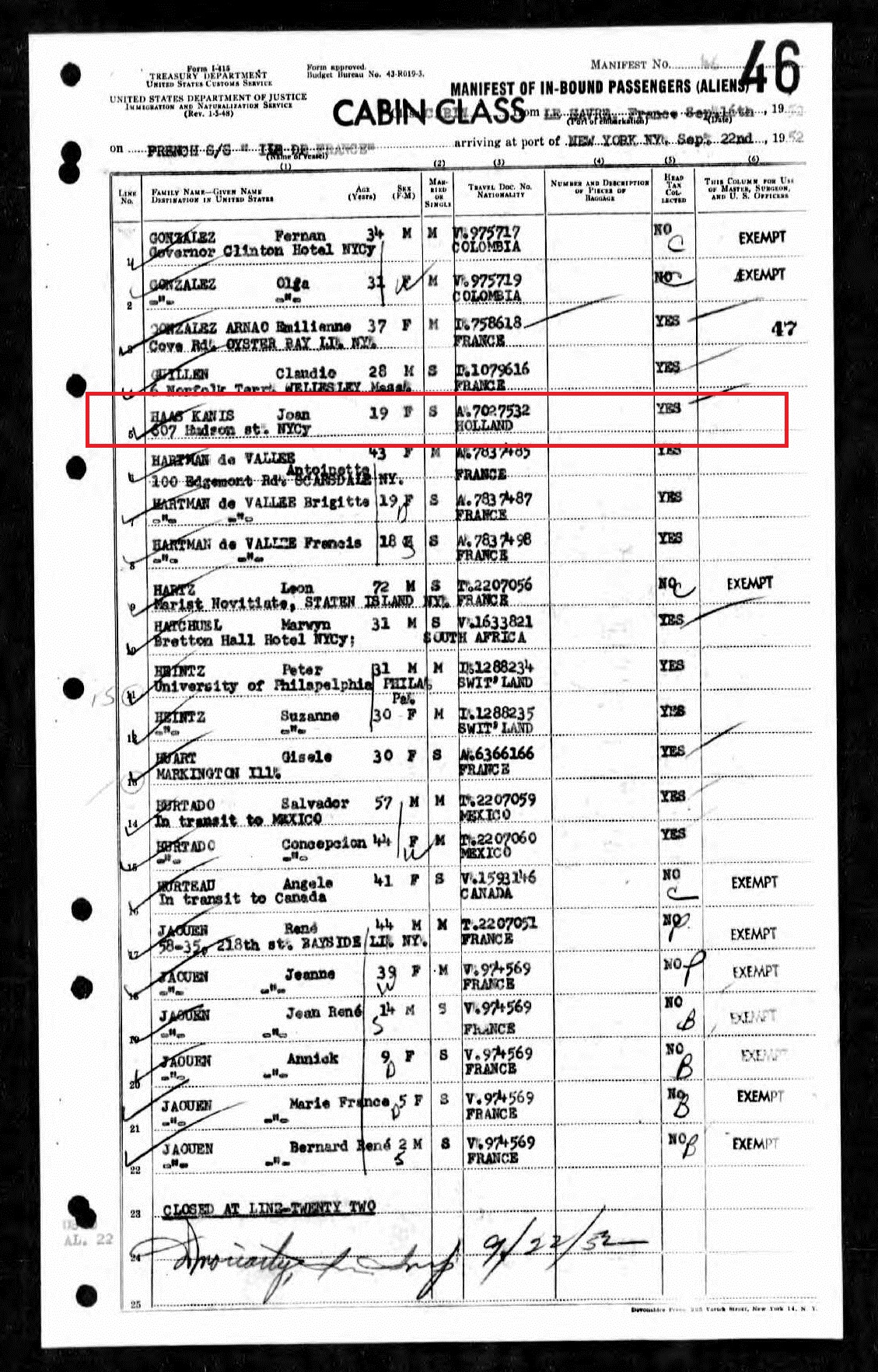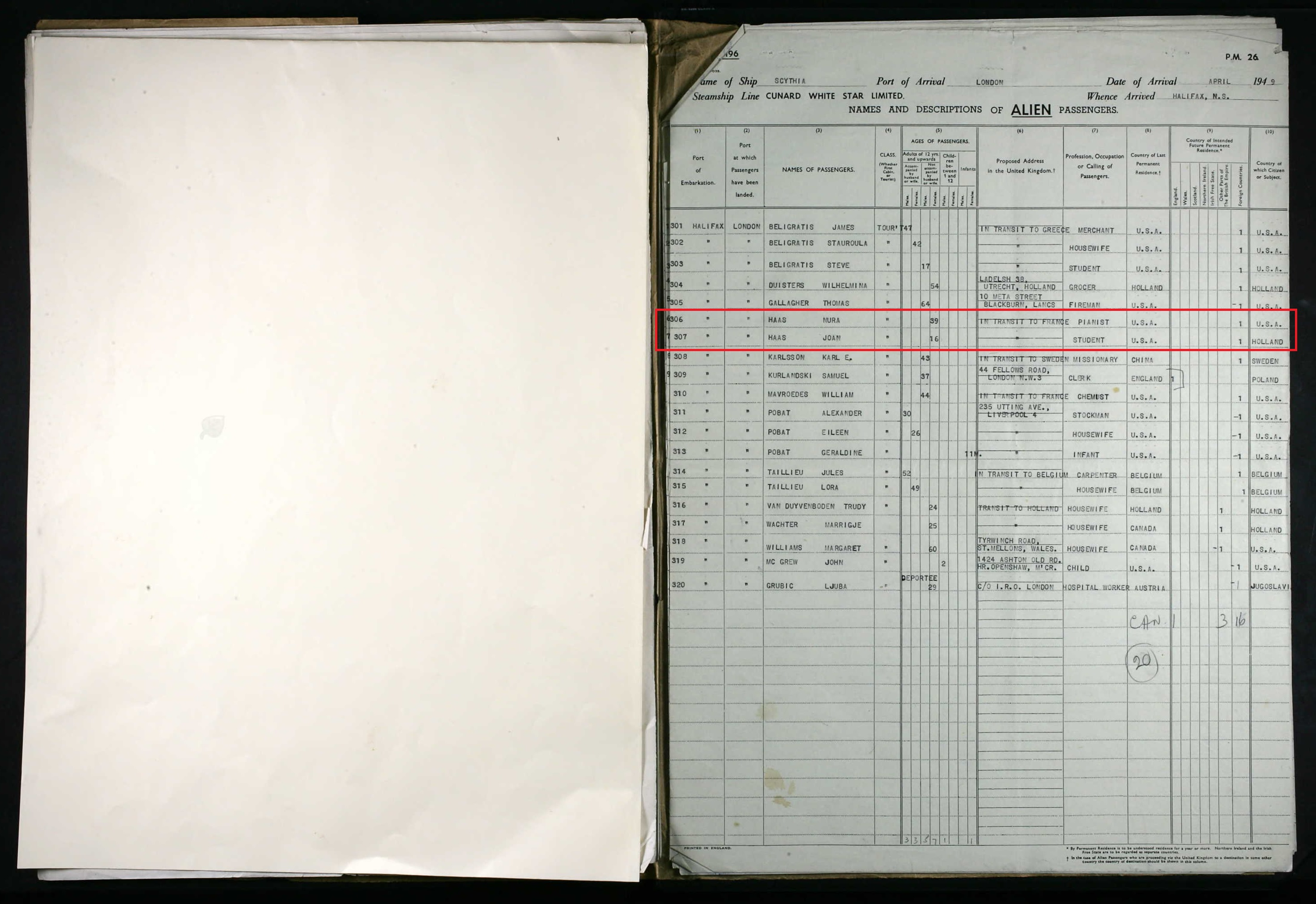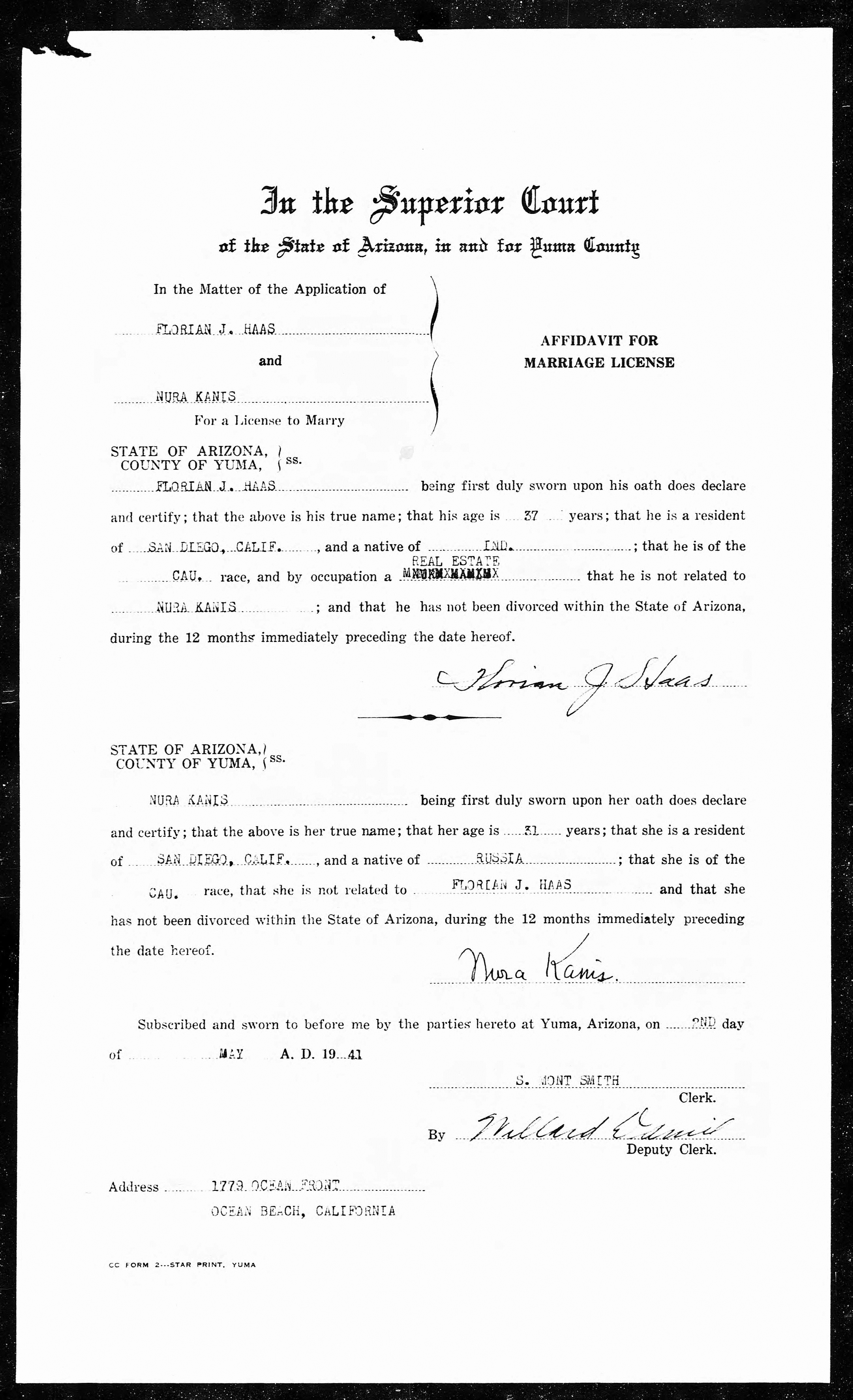 | Historical | Committed suicide at the Trocadero Hotel in Kowloon. Joan (b. February 24, 1933, Shanghai) was born six months after John committed suicide. John was previously married to Emma Robinson (b. August 2, 1896, Indonesia; d. October 25, 1977, The Netherlands). They were married on February 11, 1917 in Ambarawa, Central Java, Indonesia, near where he was stationed in the Dutch army. They had five children together – Adèle Johanna Kanis Van Straaten (b. May 17, 1917; d. January 27, 2000), John Kanis (b. June 3, 1918; d. February 19, 1995), Felix Emmanuel Kanis (b. August 16, 1920; d. December 28, 1994), Max Kanis (b. 1921) and Sybile Kanis (b. 1921). Max and Sybile were twins. He died at three months; she died at ten months. According to newspaper reports, Nura was the pianist in David Jacob Wolff’s (4D7) trio at the Gloucester Hotel. The trio debuted on June 1, 1935 but ended with Wolff’s death on July 30 that same year. Nura (b. November 17, 1909, Kansk, Russia; d. May 8, 1996, San Diego) married Florian Joseph Haas in Arizona on May 2, 1941. They were living in San Diego at the time but it seems they were living in Hollywood in 1943. On the marriage certificate, Florian states his age as 37, meaning he was born around 1904. However, his WWII draft registration has his DOB as October 26, 1894, a 1940 ship’s manifest lists it as October 27, 1898, and his death certificate lists it as August 28, 1895. John’s mother died in the Sobibor concentration camp on April 2, 1943. |