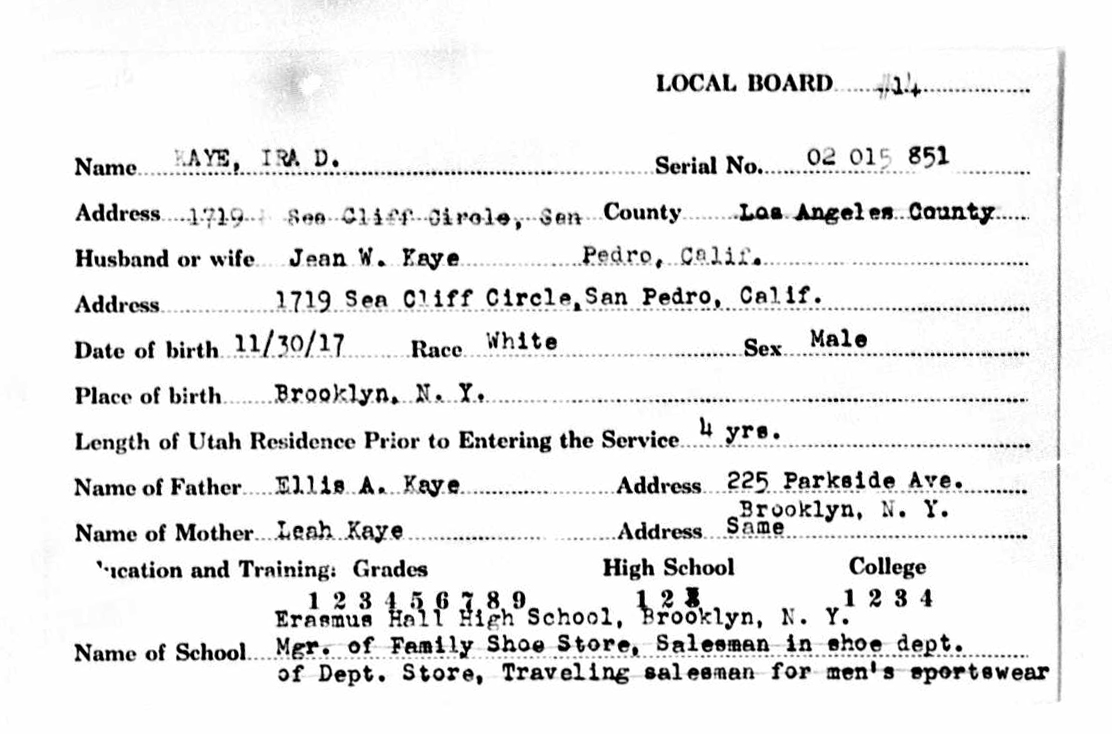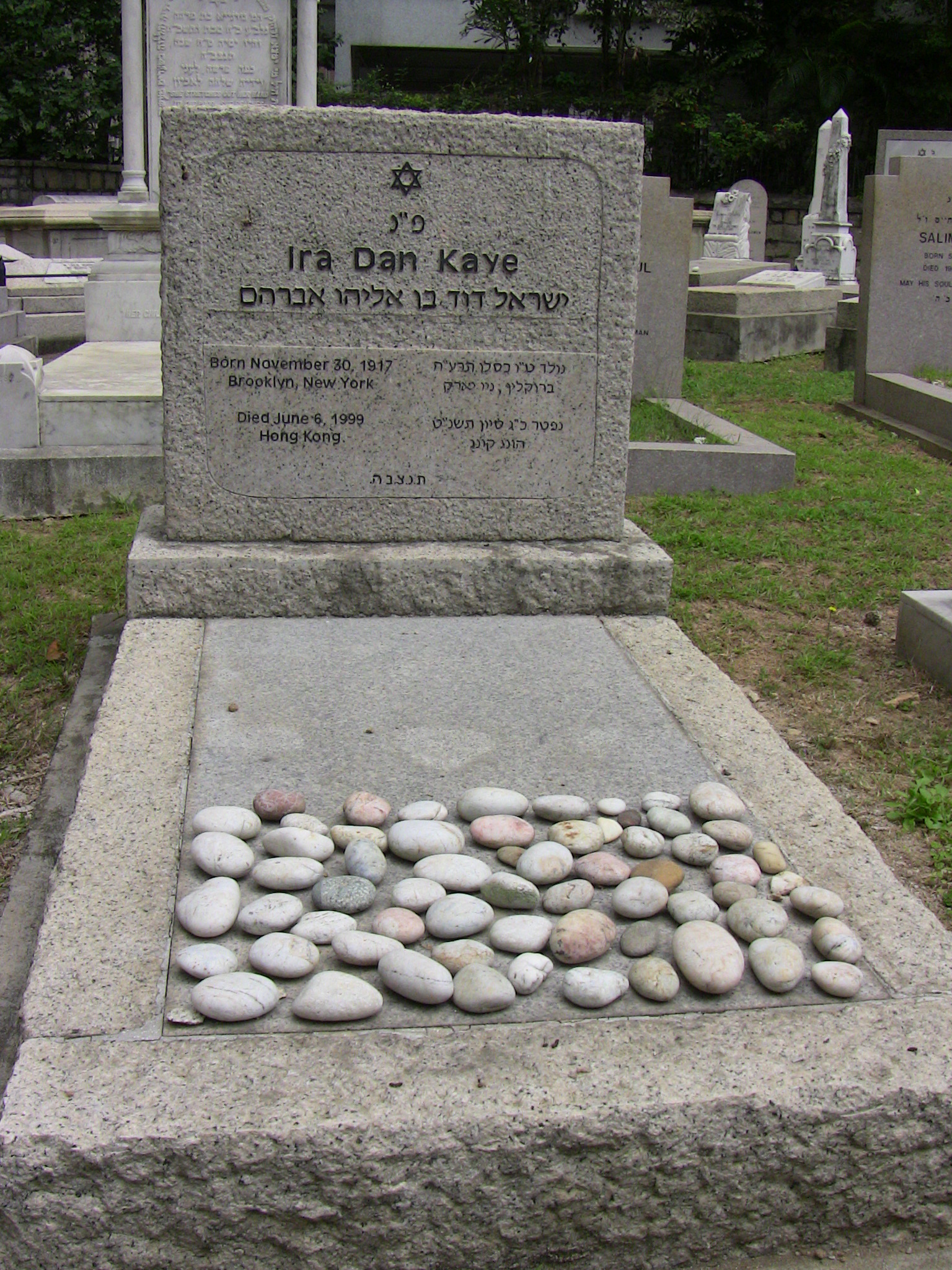 | Inscription (Eng) | IRA DAN KAYE BORN NOVEMBER 30, 1917 BROOKLYN, NEW YORK DIED JUNE 6, 1999 HONG KONG |