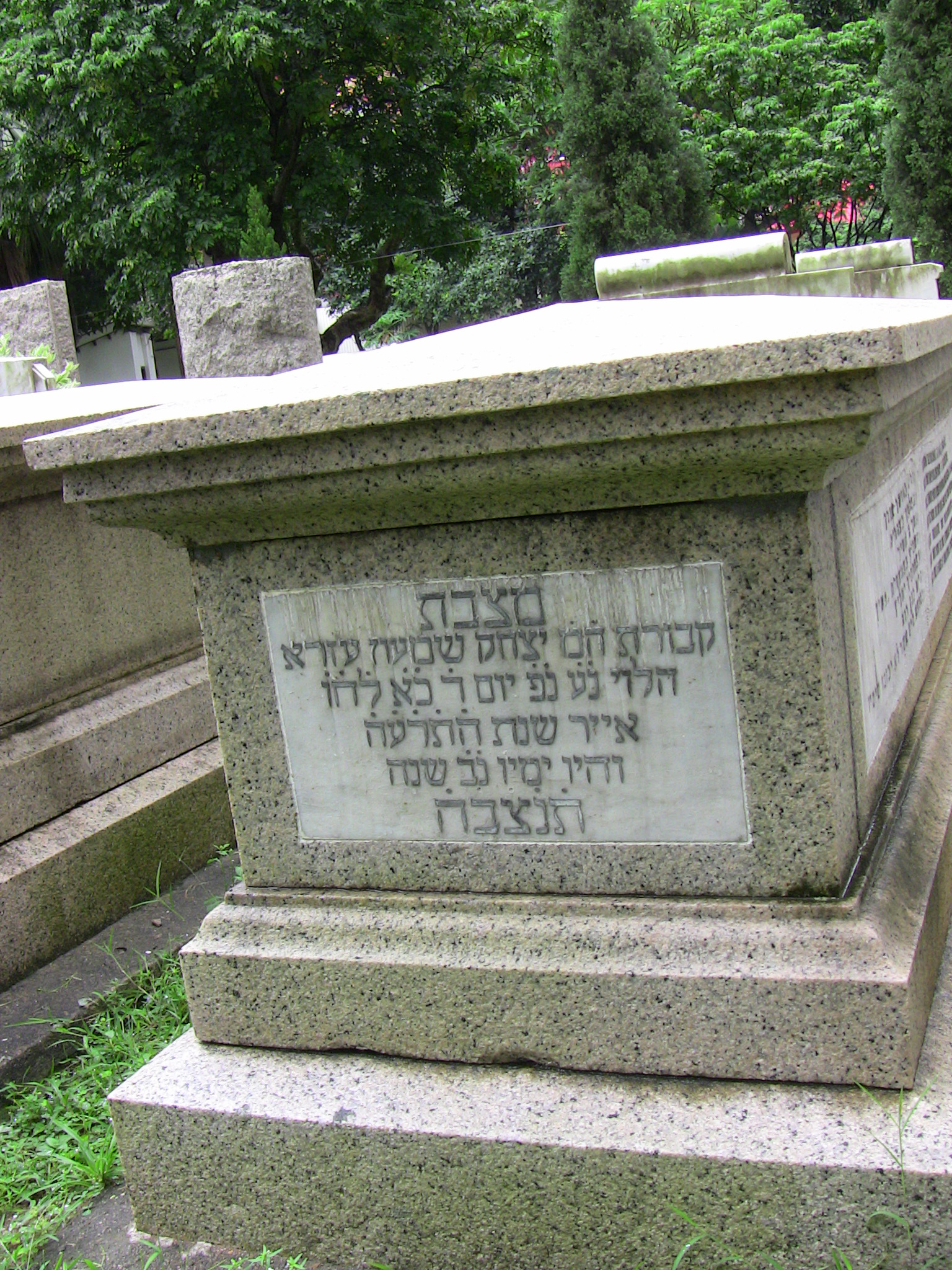 | Inscription (Heb) | מצבת קבורת ה״מ יצחק שמעון עזרא הלוי נ״ע נ״פ יום ד׳ כ״א ל׳ח׳ו׳ אייר שנת ה׳ת׳ר׳ע׳ה׳ והיו ימיו נ״ב שנה ת׳נ׳צ׳ב׳ה׳ וזרח בחן ושד אורך ואפלתך בצהרים ונכד ה׳ תמיד והשביע בצחצחות נפשיך ועצמותיך יחליץ והיה כגן רוח וכמוצא מים אשר לא יכזבו מימין ברכי נפשי אש ה׳ ואל תשכחי זל גמוליך הסולך לכל עונכי הרפה לכל בחלואיכי הגואל משחת חייכי המעטרכי חסד ורחמים המשביע בטוב עציך תתחדש כנשר נעוריכי |