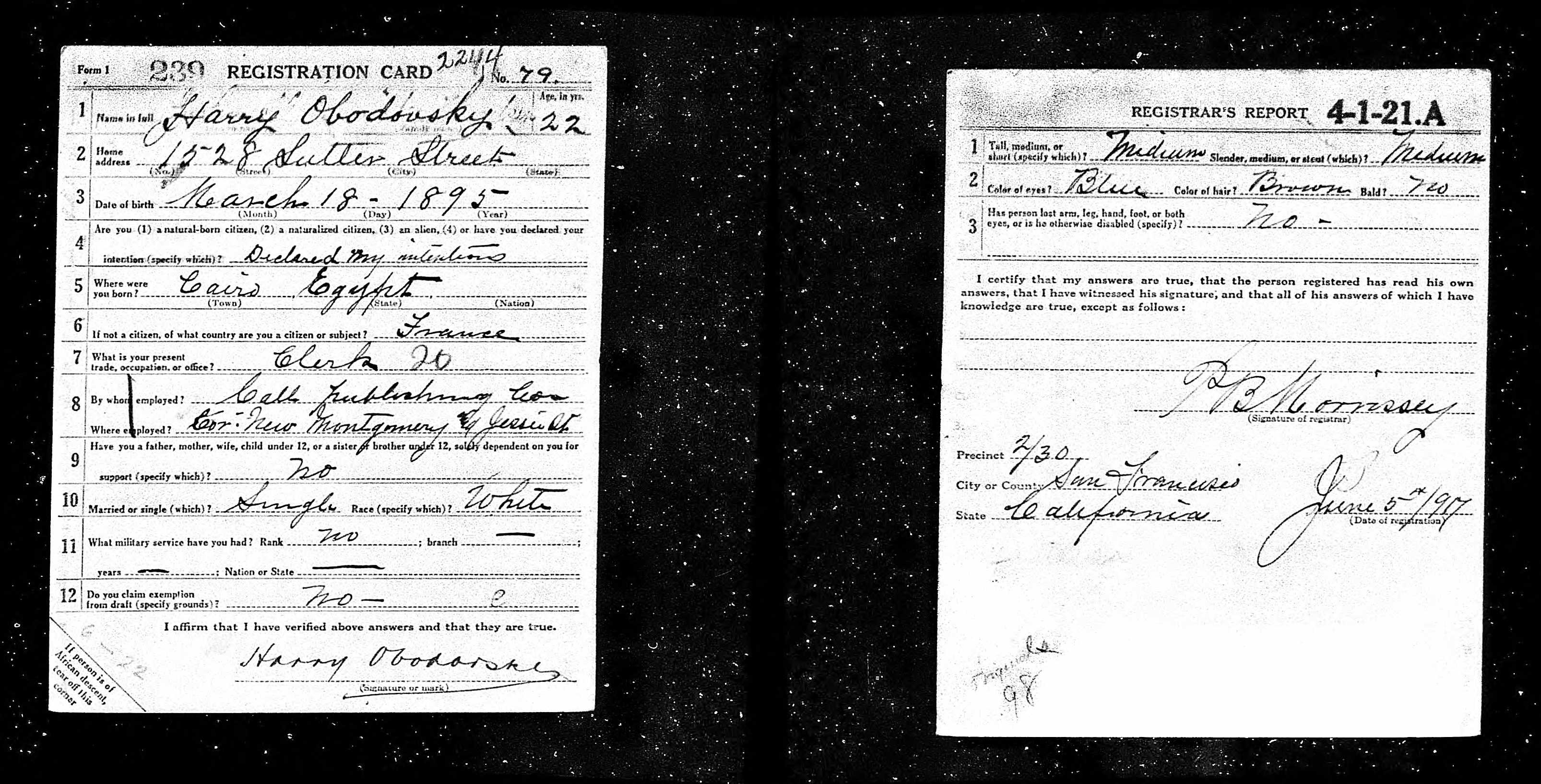 | Given Name(s) | Harry O. (Harold Oscar) |