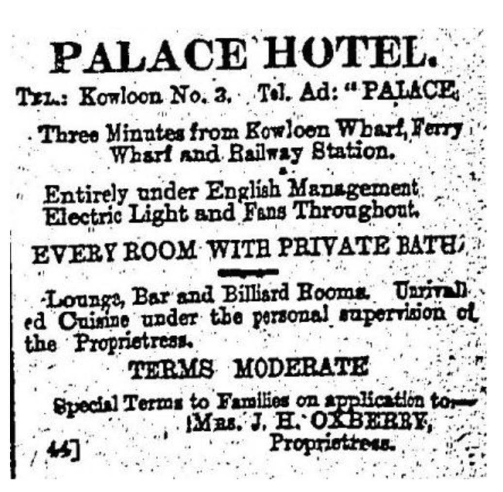 | Historical | Proprietress of the Palace Hotel in Kowloon. UK National Archives reference number FO 655/2065. |