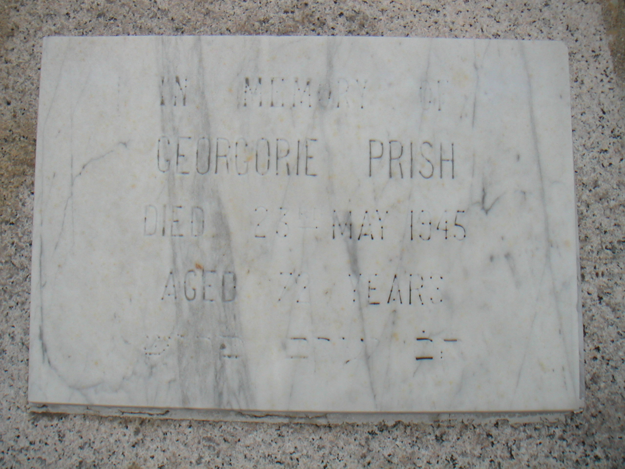 | Inscription (Eng) | IN MEMORY OF GEORGORIE PRISH DIED 23RD MAY 1945 AGED 72 YEARS |