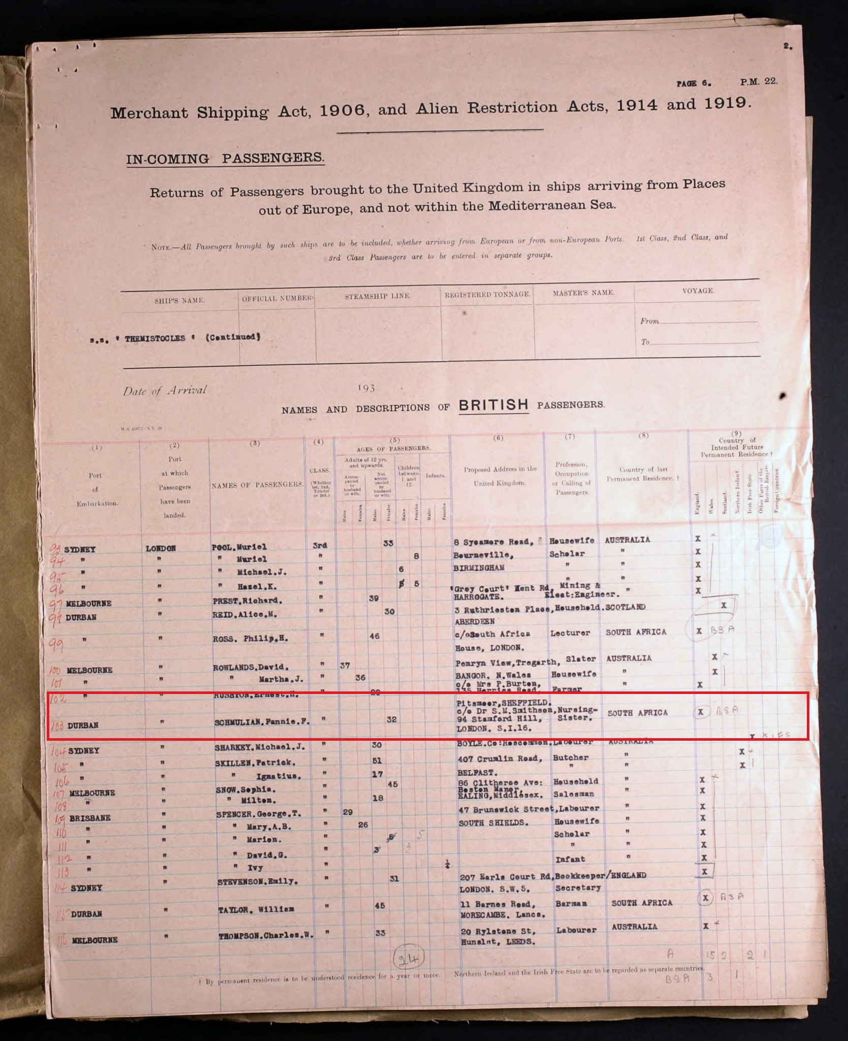| Other Family Data | She was the second of six children: Sonia Selesnick (b. February 12, 1900), Samuel (b. circa 1905), Betty Isaacs, Louis David (b. circa 1913; d. August 14, 1981) and Solomon “Solly” (b. 1916; d. December 15, 1981, Durban) |