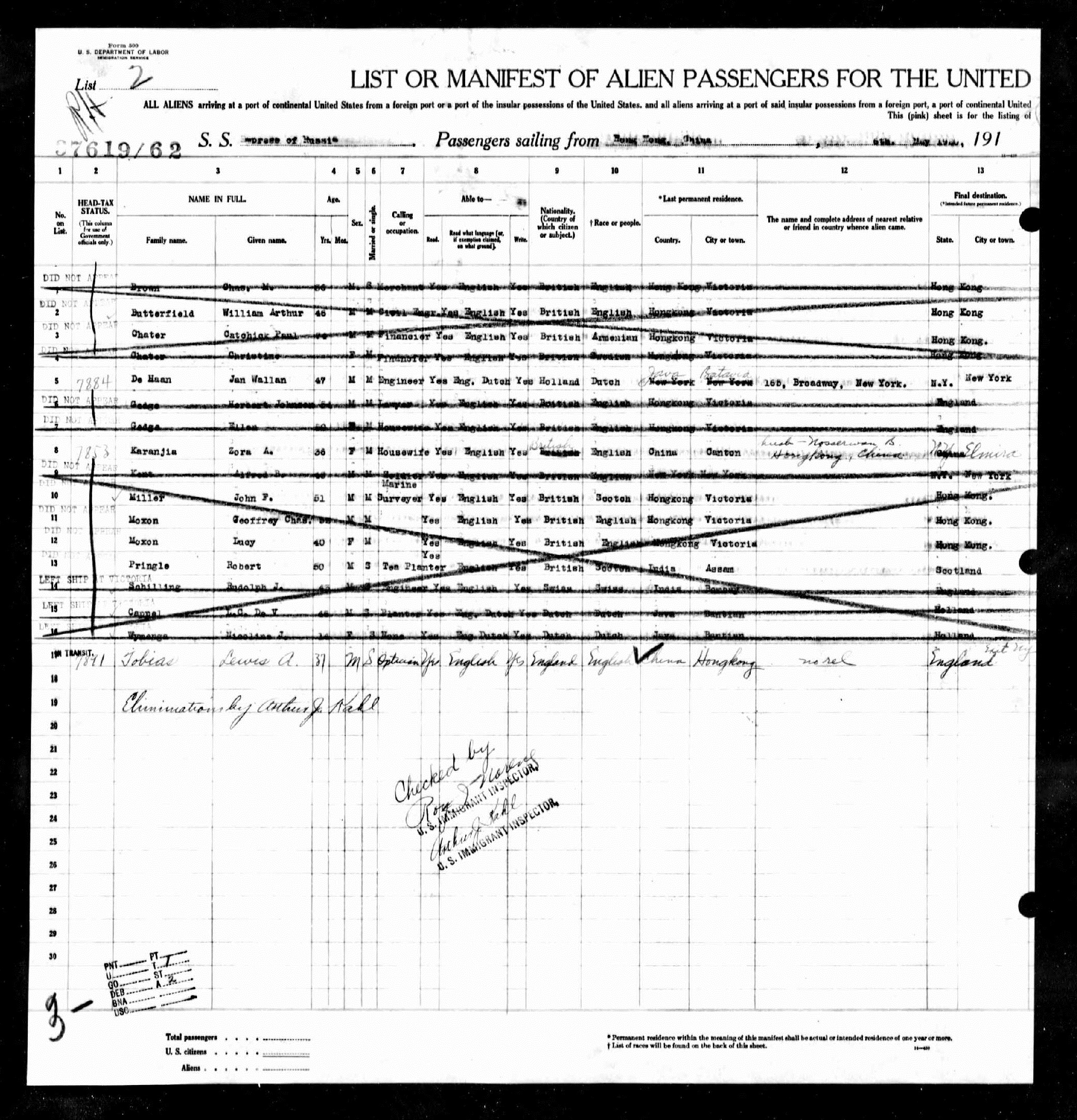 | Historical | Year of birth on stone is incorrect. According to his obituary, he arrived in Shanghai in 1911. There, he worked as an optician at N. Lazarus on Nanking Road along with a Mrs. H. Tobias. This was Julia Tobias, who was married to his brother, Harry (Henry). Julia was the daughter of optician Nathan Lazarus. He stayed in Shanghai for six months before moving to Hong Kong. In the 1919 jurors’ list, he is reported as working for Lazarus & Co. In the 1923 jurors’ list, he is reported as being an optician and working for the same company. H. Tobias was the proprietor of N. Lazarus, located at 1A, D’Aguilar Street, Central. He was the president of the Jewish Recreation Club and was a senior active member of Zetland Lodge. He was also a familiar and popular figure at the Happy Valley Racecourse. He lived at 13 St. Stephens Lane. He later lived at Felix Villas in Pokfulam. |