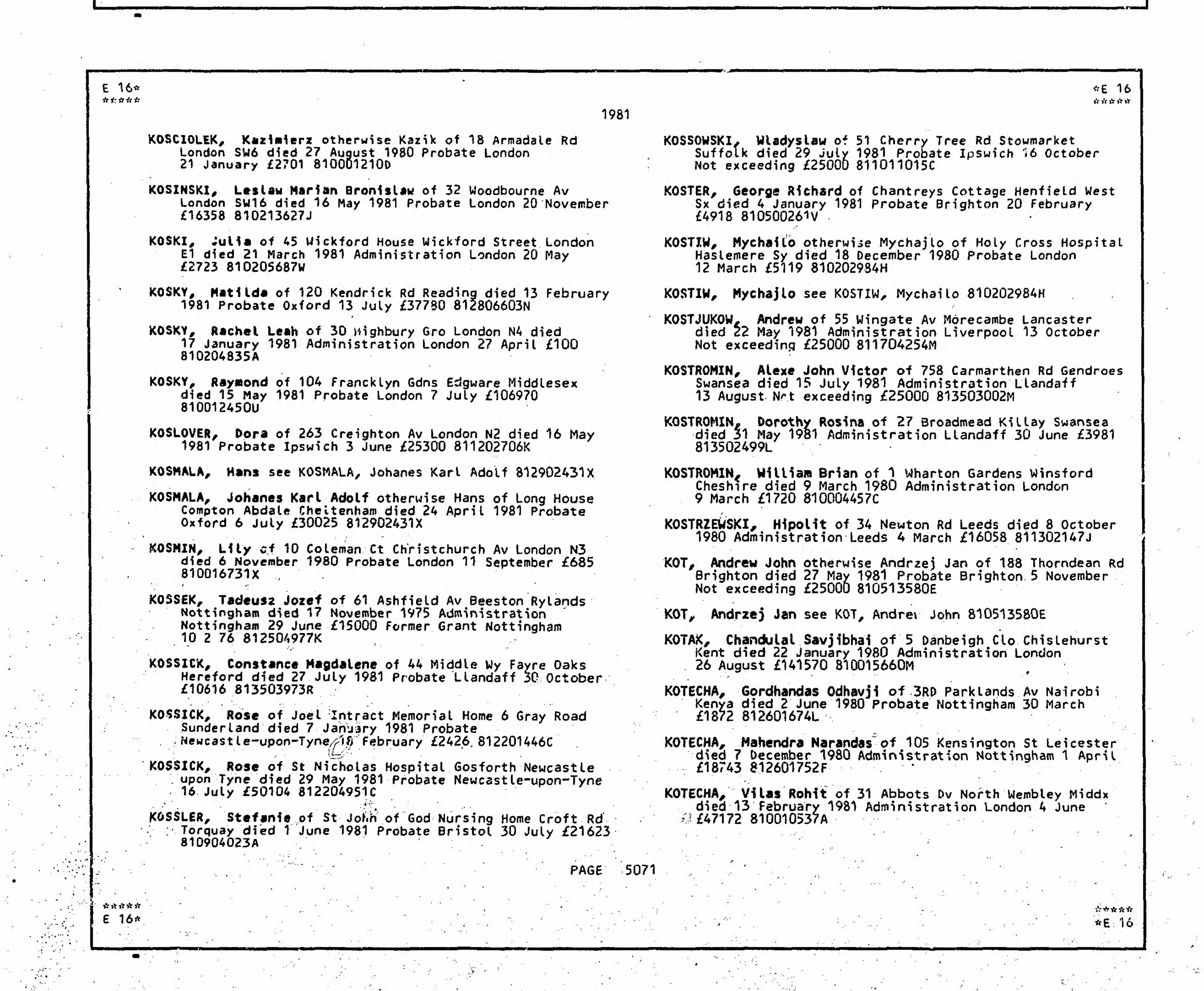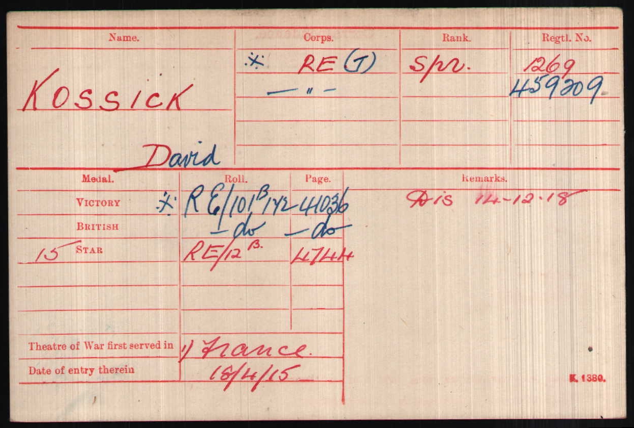 | Other Family Data | Son: Abram (Arnold) Kossick (b. 2Q 1921, Newcastle-upon-Tyne, UK; d. June 13, 1941, Germany) Brother: Sydney Kossick (b. 1904; d. July 23, 1974) |