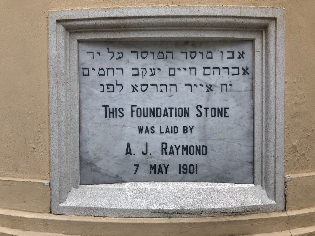 At the synagogue’s ceremony marking the laying of the stone, the local newspapers reported that A.J. Raymond gave the following speech: